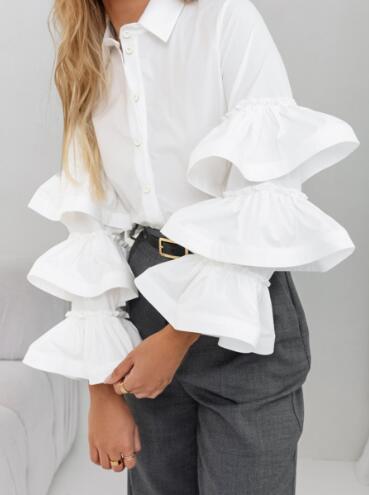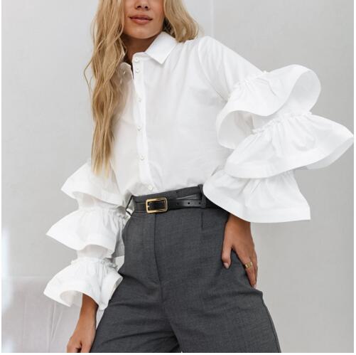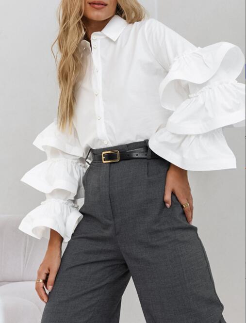 미국 아마존 프랑스 디자인 화이트 러플 셔츠 2024 가을과 겨울 새로운 캐주얼 올 매치 우아한 여성