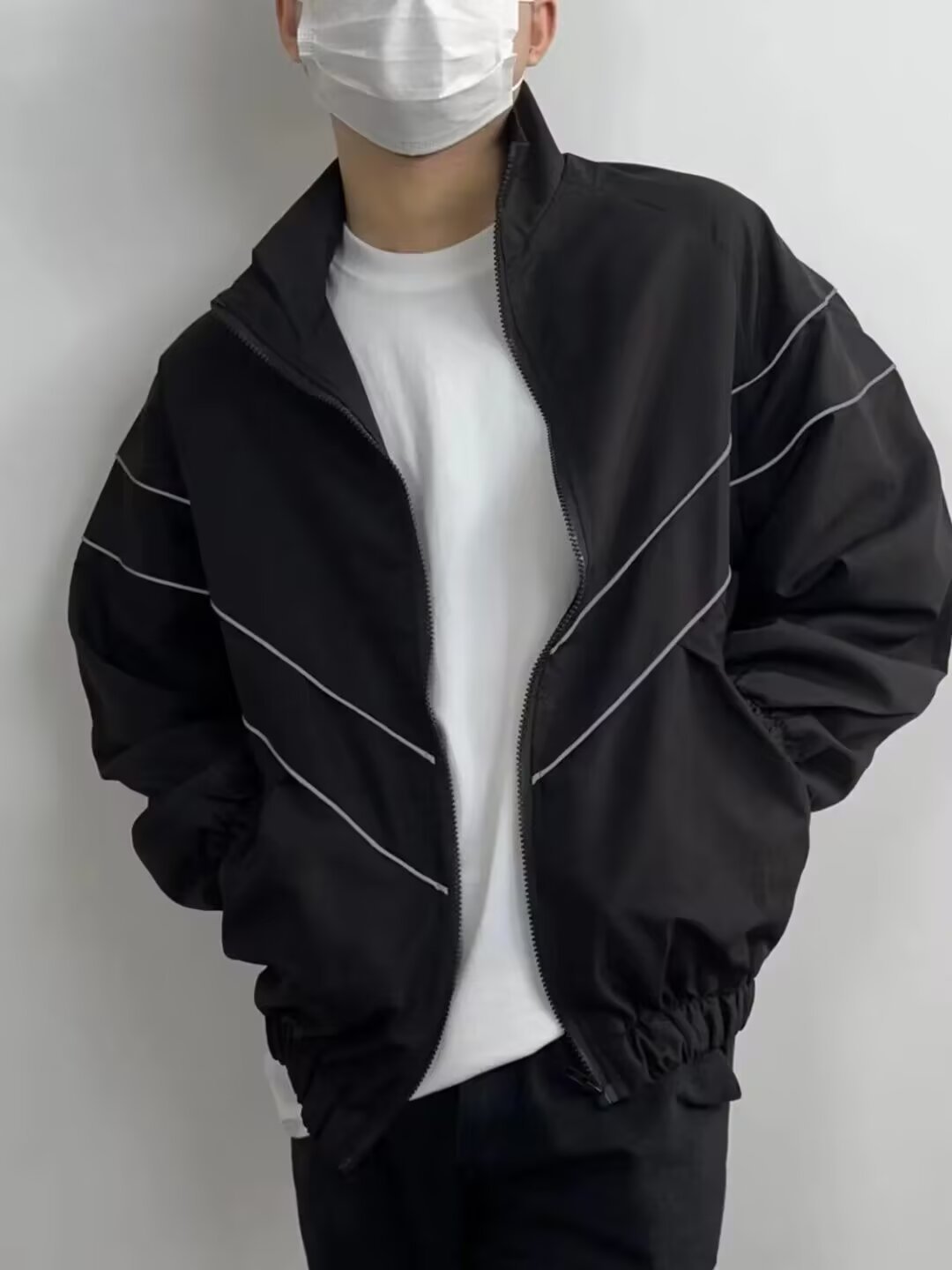 아메리칸 스타일 칼라 반사 스트립 재킷 남자 봄과 가을 스포츠 느슨한 캐주얼 블랙 올 매치 재킷 크로스 보더 재킷스토어 가기