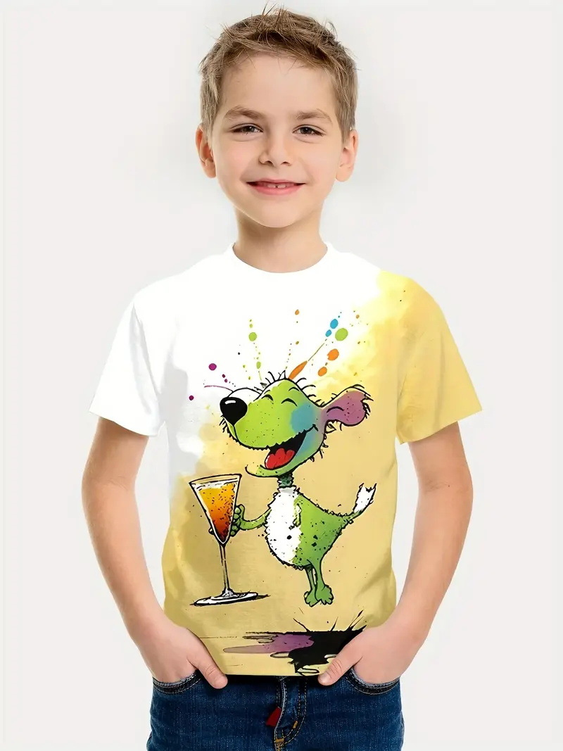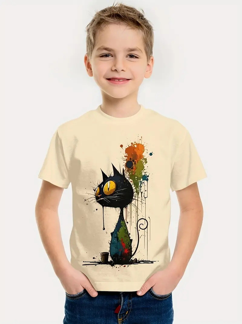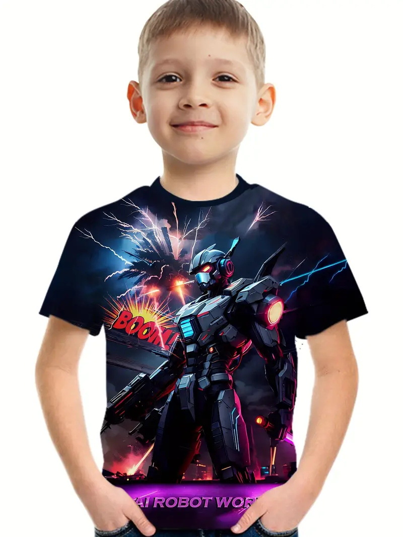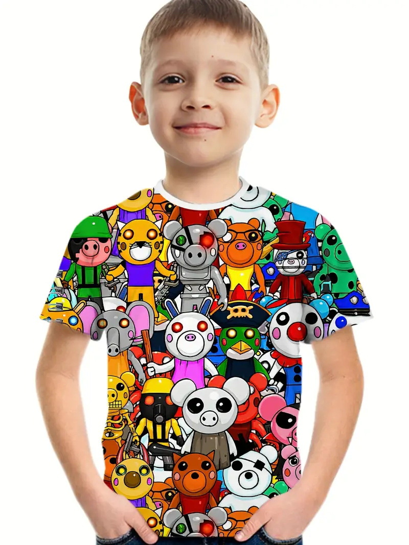 소년 반팔 티셔츠 2024 새로운 만화 스타일 여름 아동복 탑 어린이 여름 옷 소년 티셔츠 RA1스토어 가기