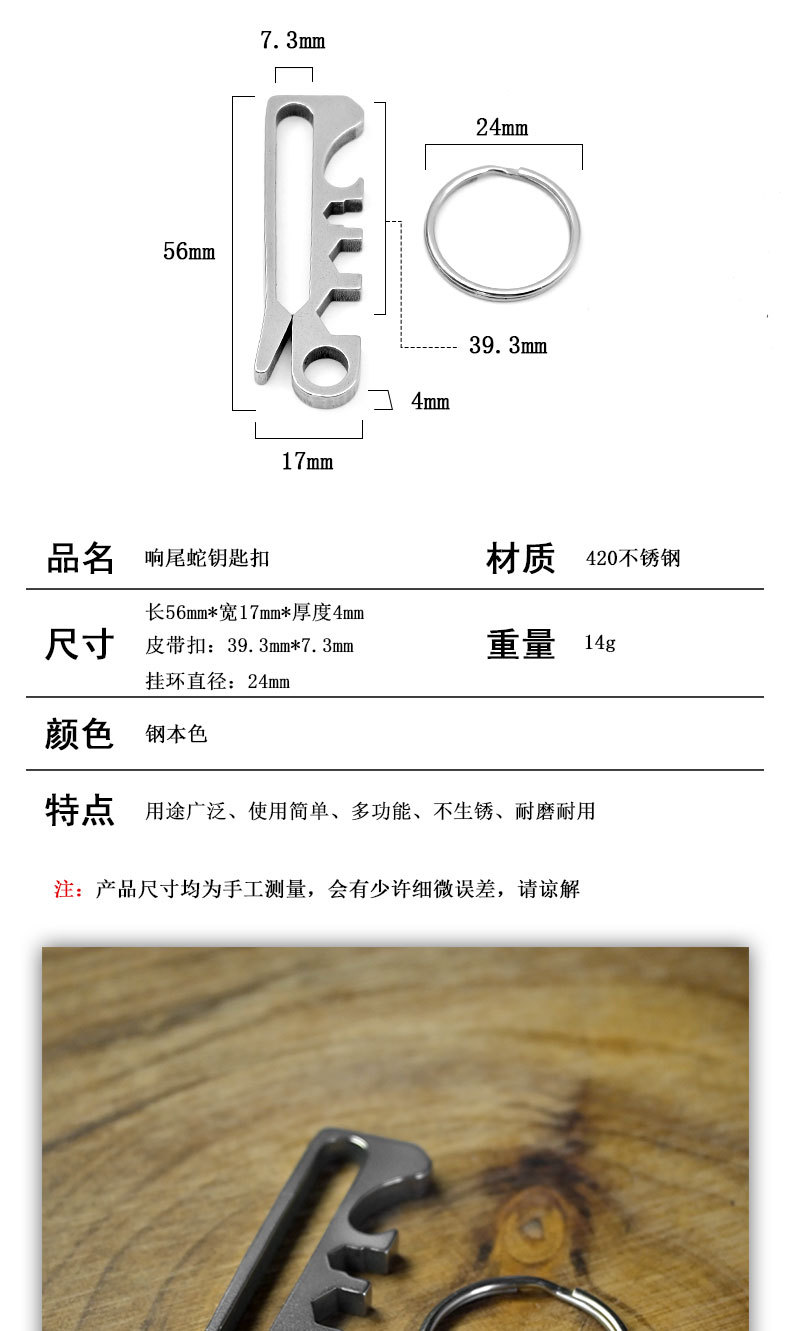 야외 장비 EDC 도구 방울뱀 클립 키 링 머니 클립 머니 클립 등산 버클 빠른 교수형 장비 액세서리