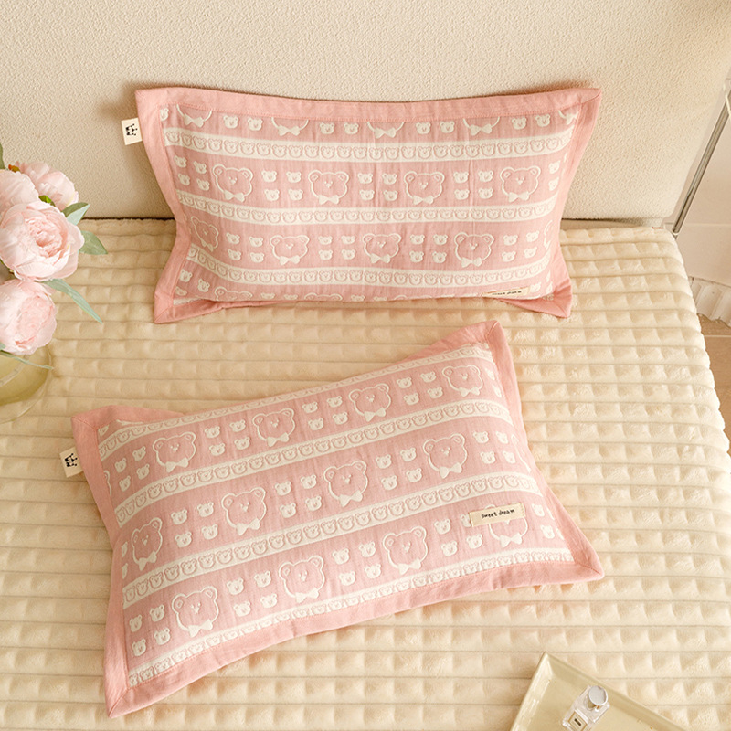 • 3겹 거즈 베갯잇 - 라이트 여름 시리즈 베이비 베어.핑크