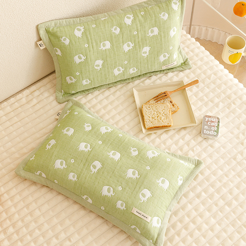 • 3겹 거즈 베갯잇 - 라이트 여름 시리즈 베이비 엘리펀트 그린