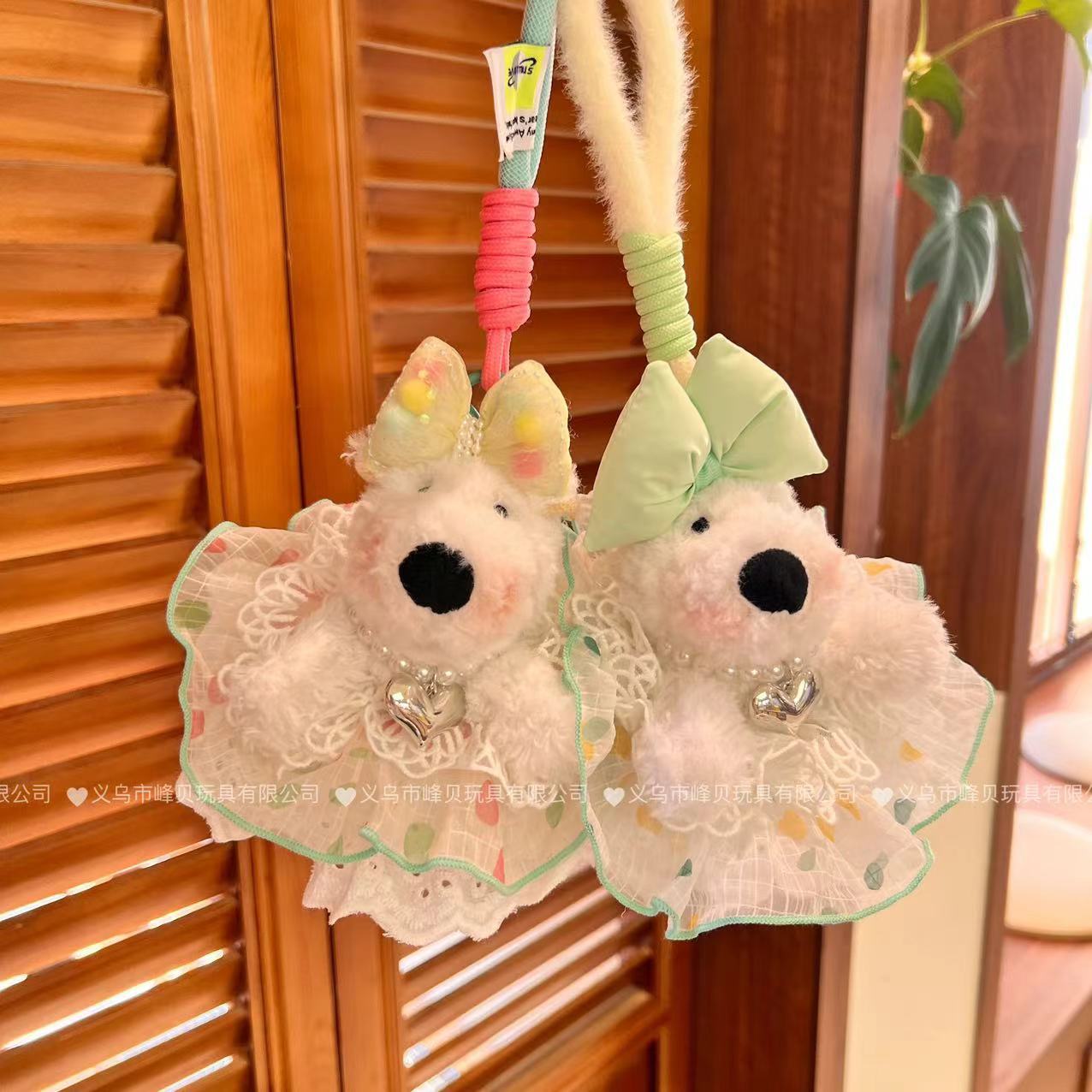 도트 통해 원사 흐름 요정 스커트 웨스트 하이랜드 봉제 펜던트 활 드레싱 강아지 가방 펜던트 장식 장식품