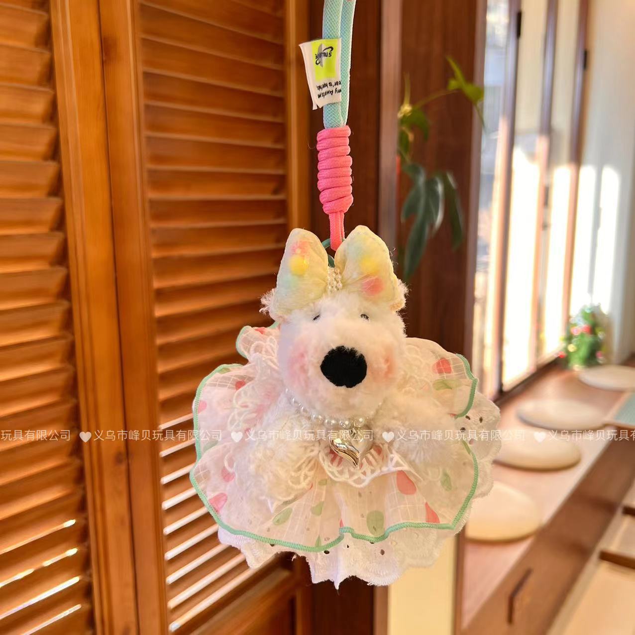 도트 통해 원사 흐름 요정 스커트 웨스트 하이랜드 봉제 펜던트 활 드레싱 강아지 가방 펜던트 장식 장식품스토어 가기