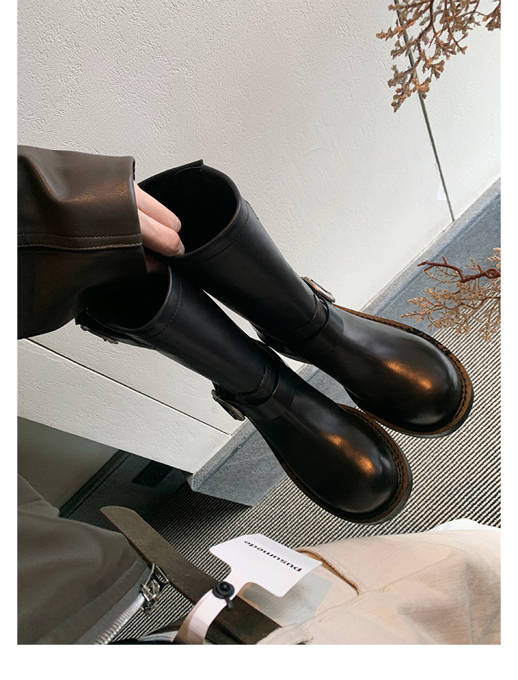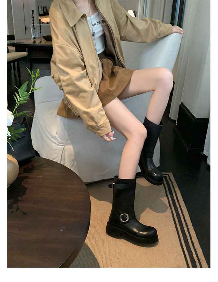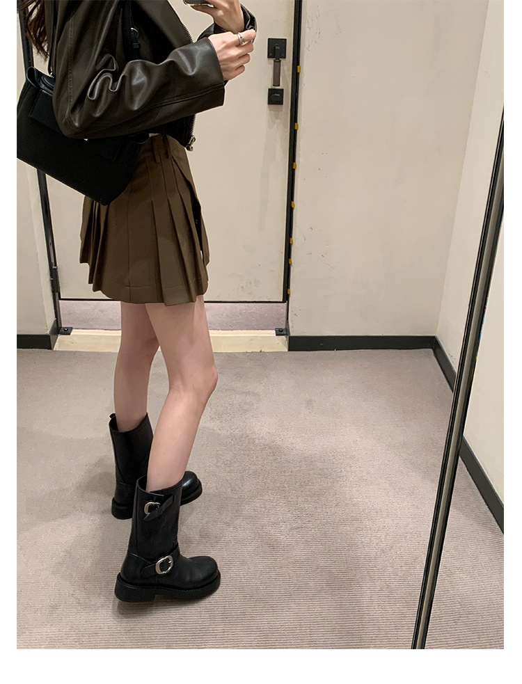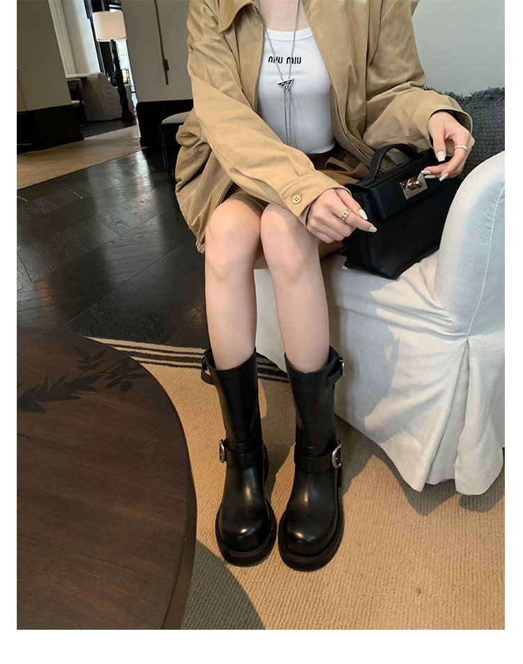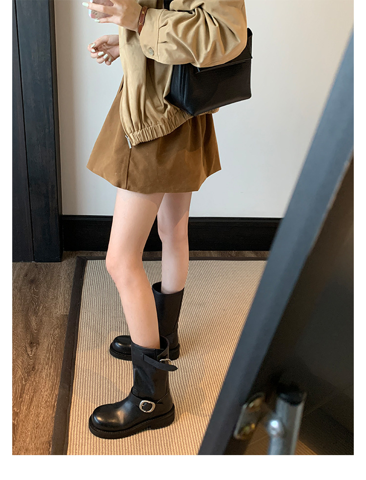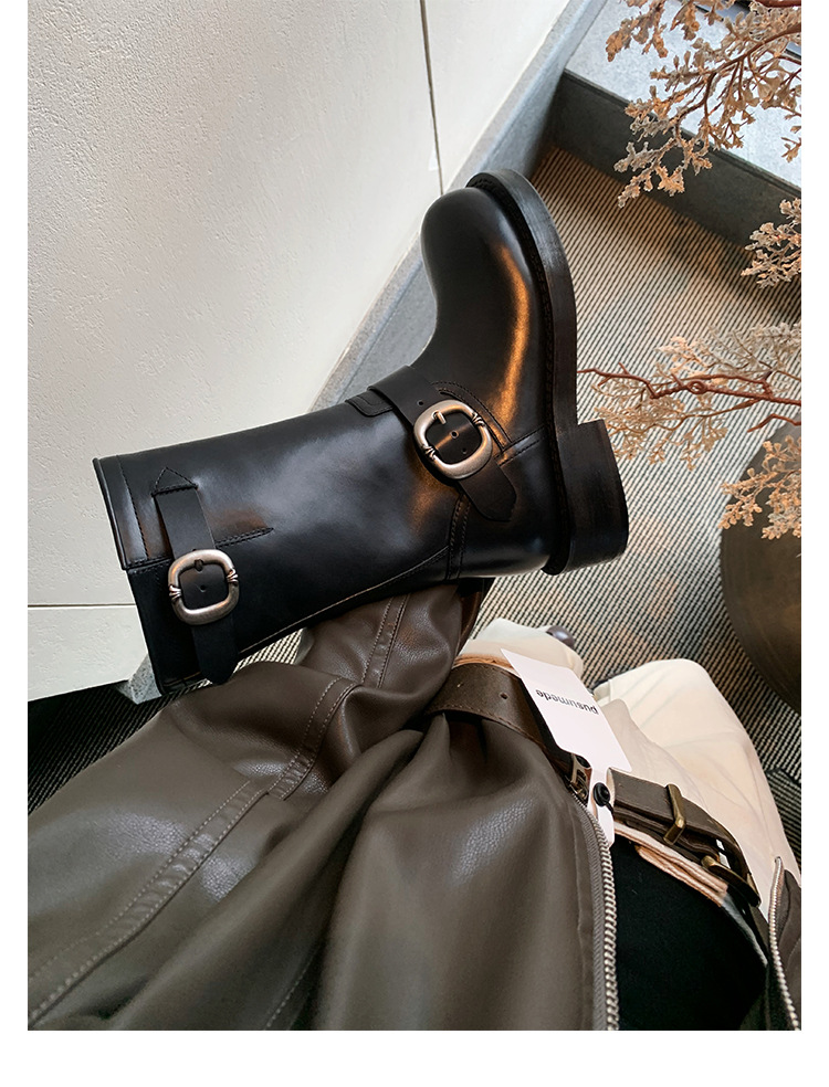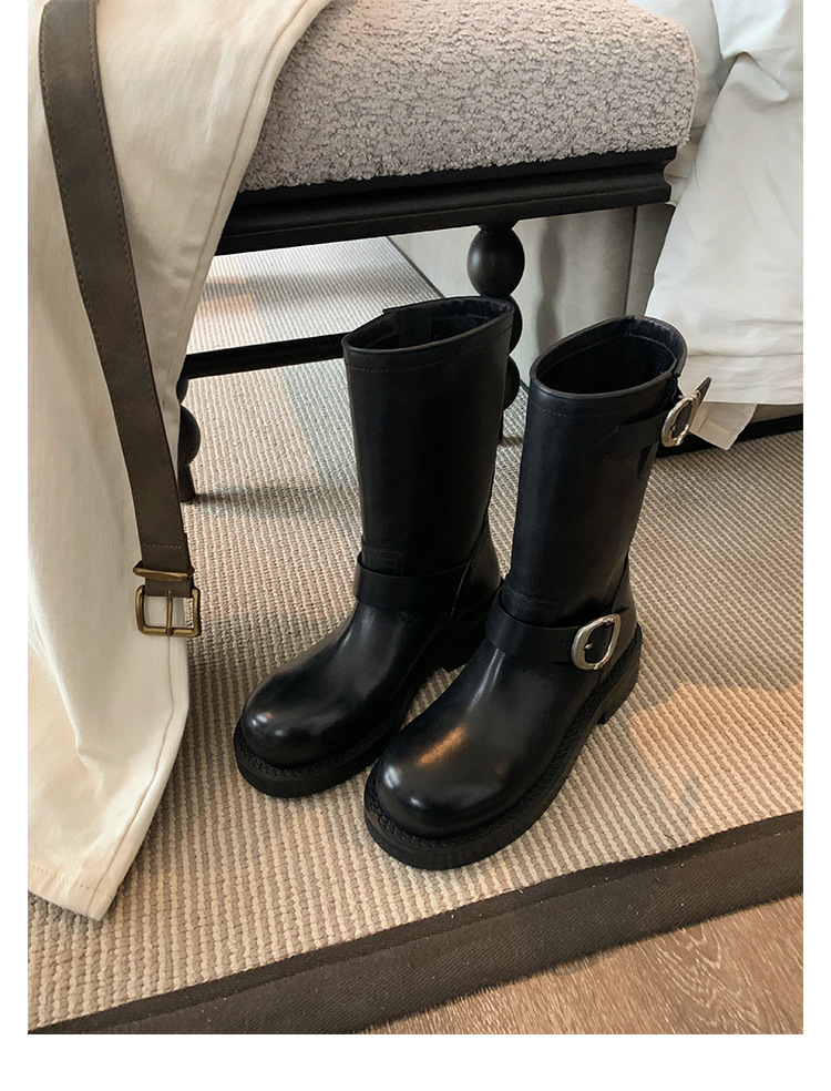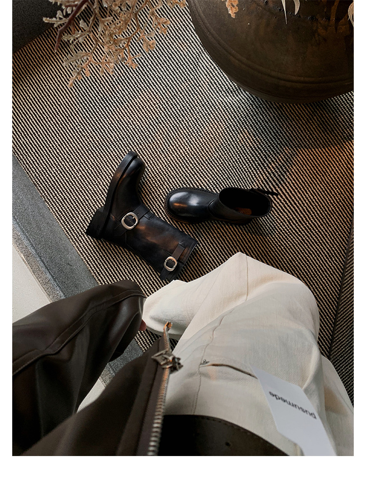 Cowhide Edition ~ 정품 가죽 두꺼운 바닥 마틴 부츠 여성 봄과 가을 영국 레트로 두꺼운 힐 오토바이 부츠 스택 부츠 중간 부츠스토어 가기
