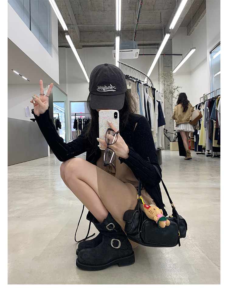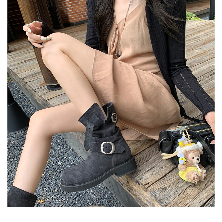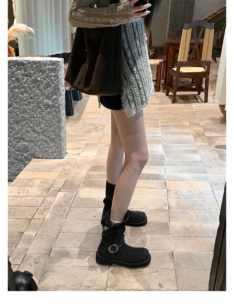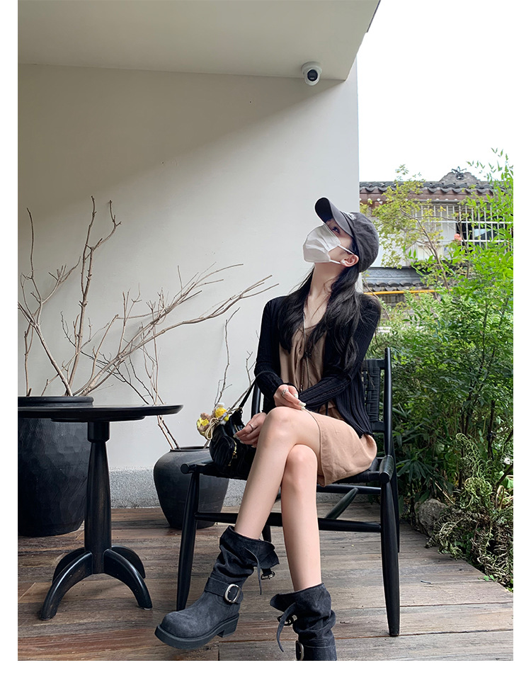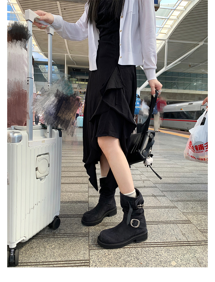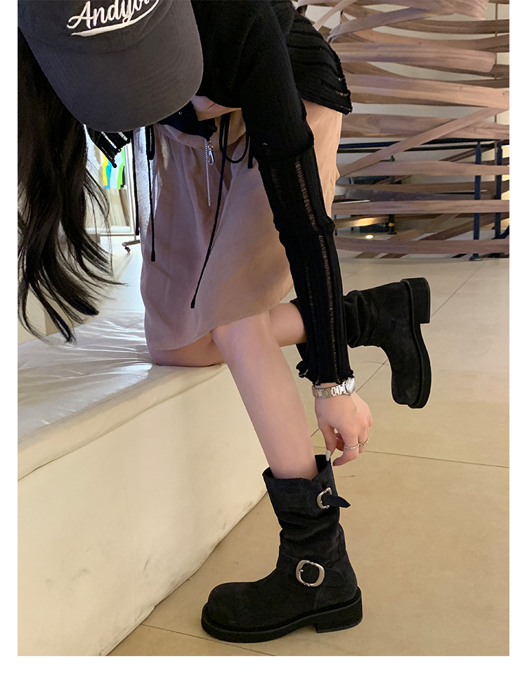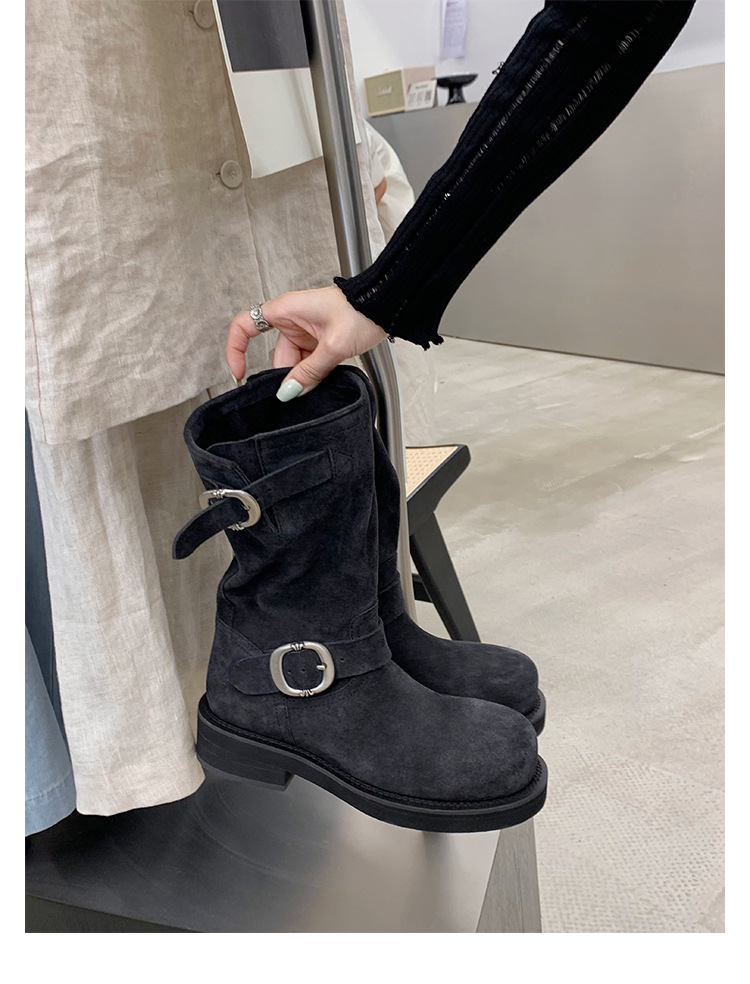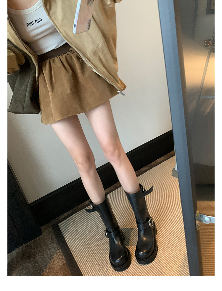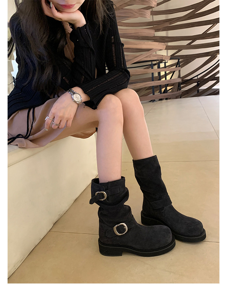 Cowhide Edition ~ 정품 가죽 두꺼운 바닥 마틴 부츠 여성 봄과 가을 영국 레트로 두꺼운 힐 오토바이 부츠 스택 부츠 중간 부츠스토어 가기