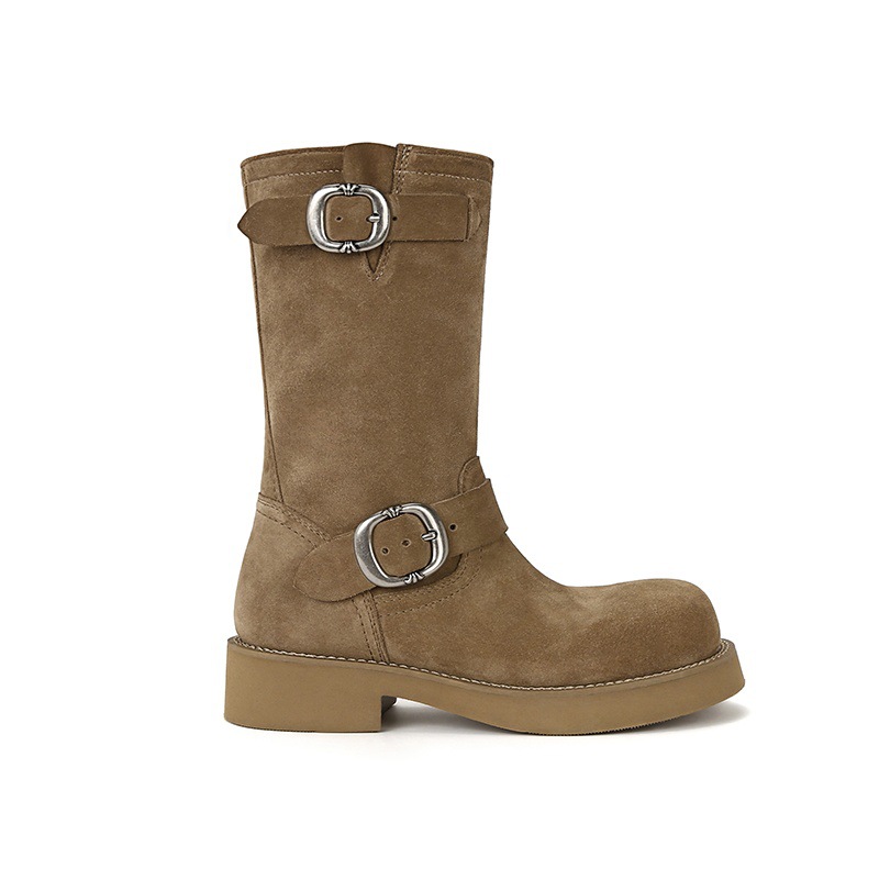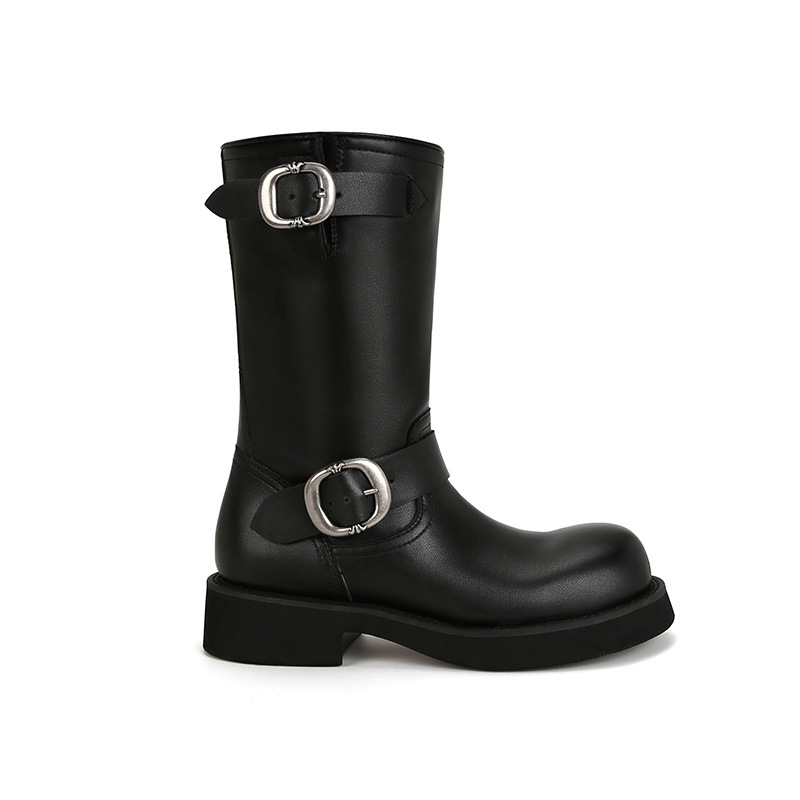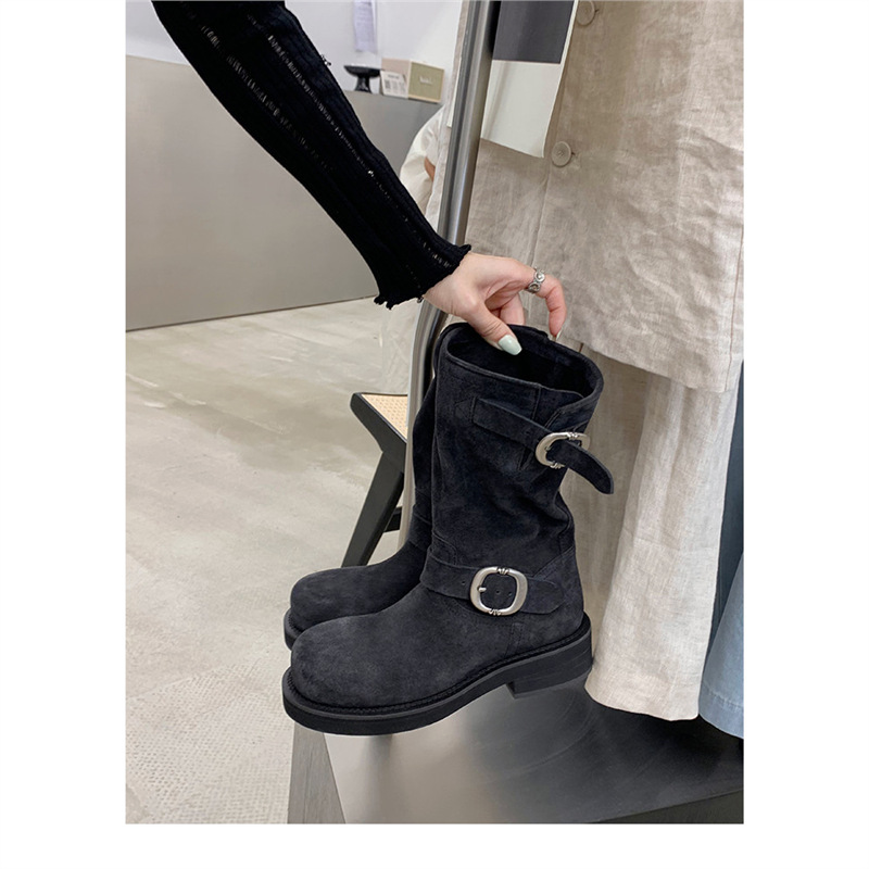 Cowhide Edition ~ 정품 가죽 두꺼운 바닥 마틴 부츠 여성 봄과 가을 영국 레트로 두꺼운 힐 오토바이 부츠 스택 부츠 중간 부츠
