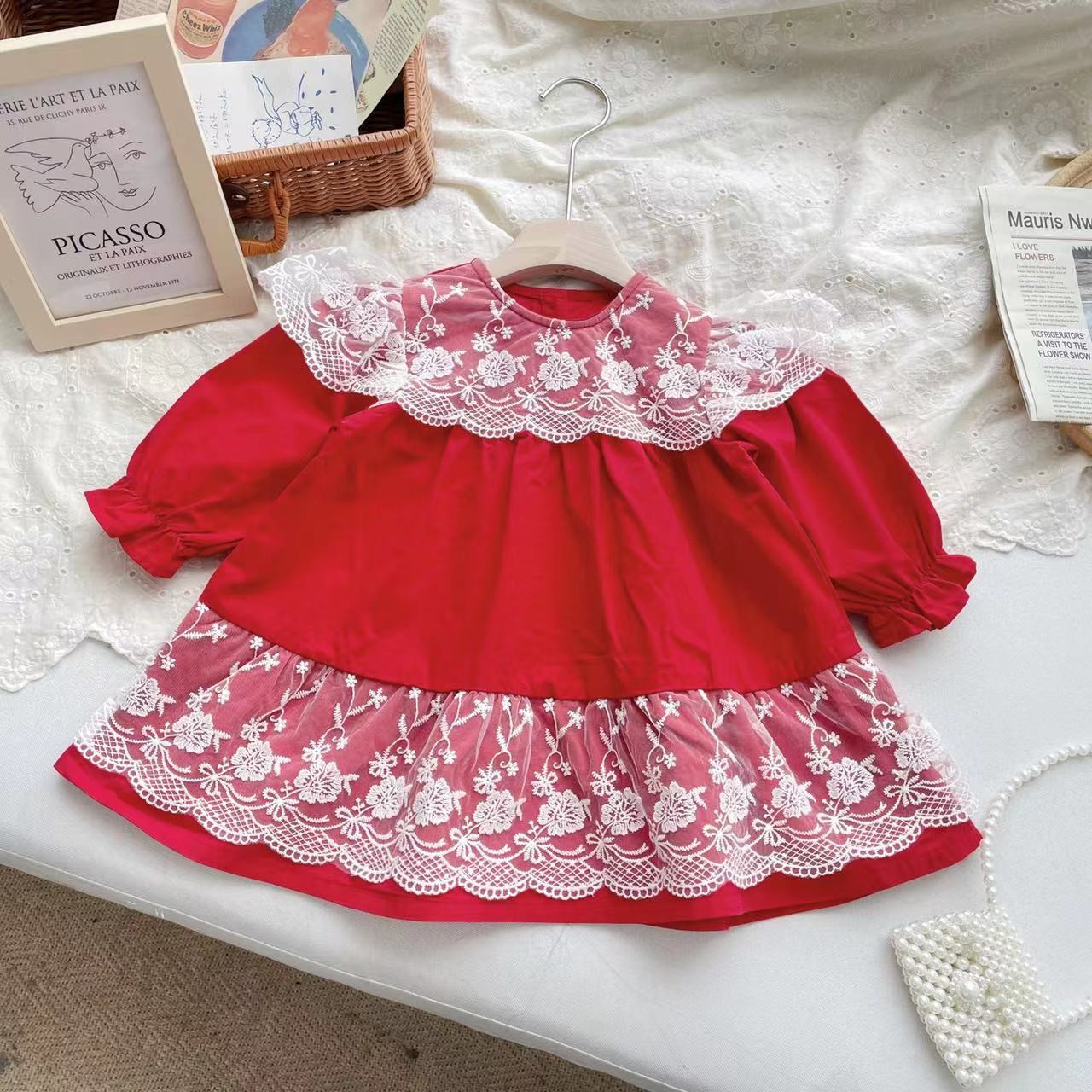 CQ239078 어린이 드레스 2023 봄 새로운 여자 어린이 아기 소녀 달콤하고 귀여운 드레스