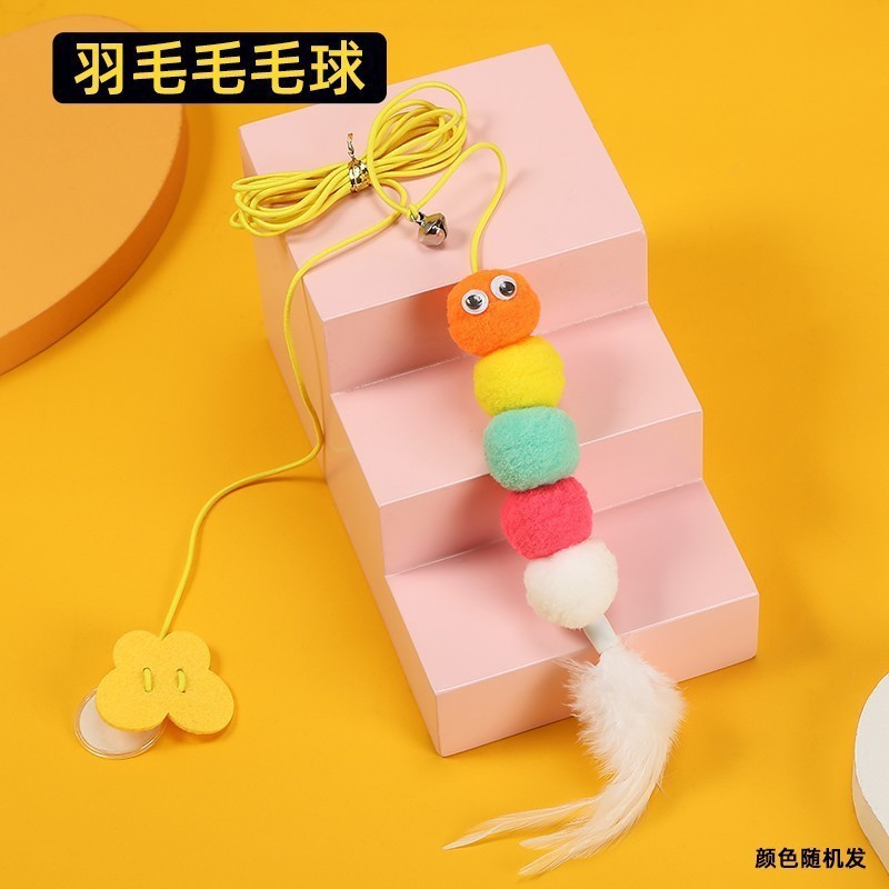 고양이 장난감 자기 즐거움과 지루함 완화 스윙 교수형 문 교수형 탄성 깃털 고양이 스틱 벨 작은 마우스 고양이 용품스토어 가기
