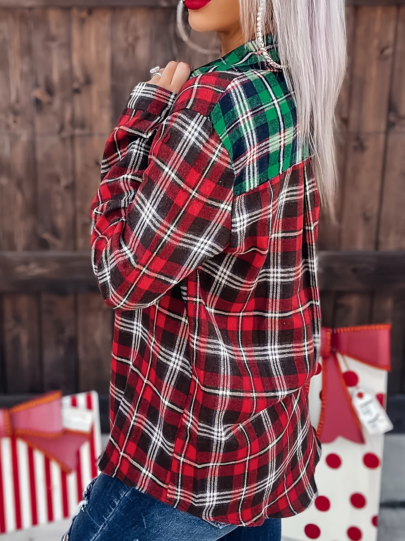 2025 가을 겨울 유럽 및 미국 독립 스탠드 여성복 신상 체크 배색 포켓 라펠 스트리트 패션 캐주얼