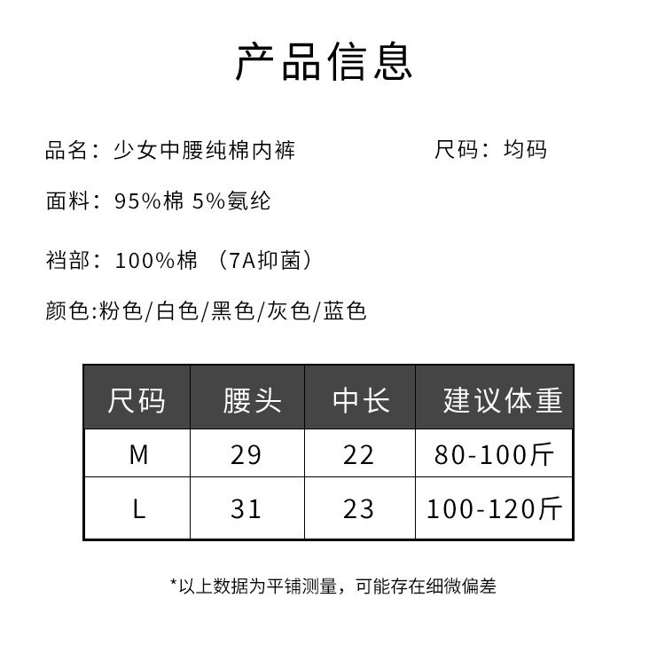 여성용 달콤한 미드 웨이스트 팬티 7A 항균 100% 면화 된 크로치 플러스 사이즈 여성 고등학생 소녀 브리프스토어 가기