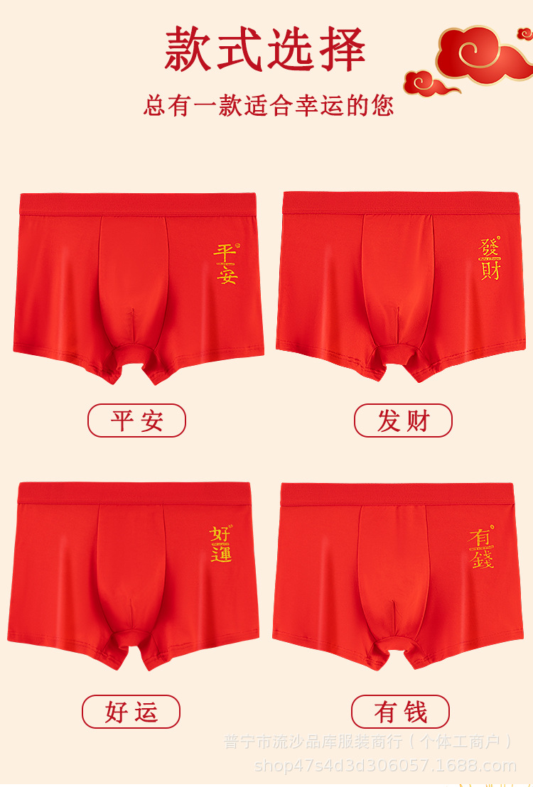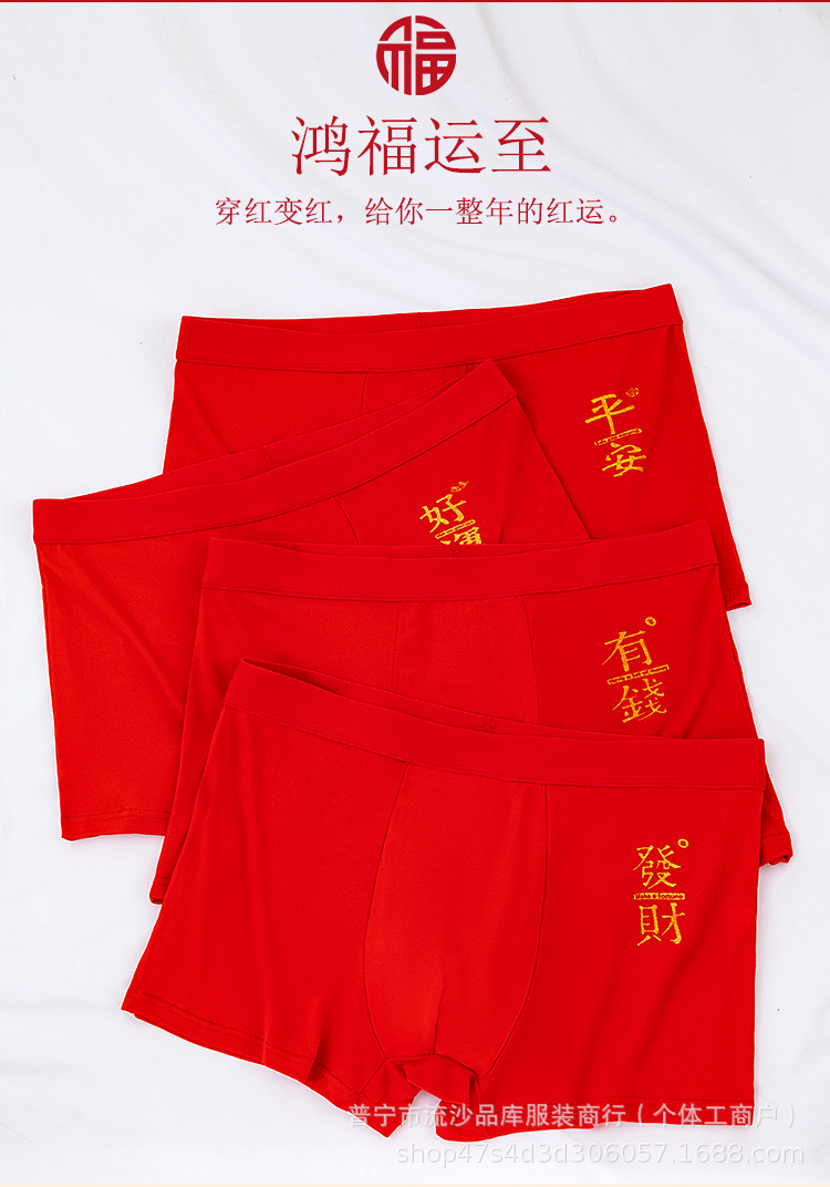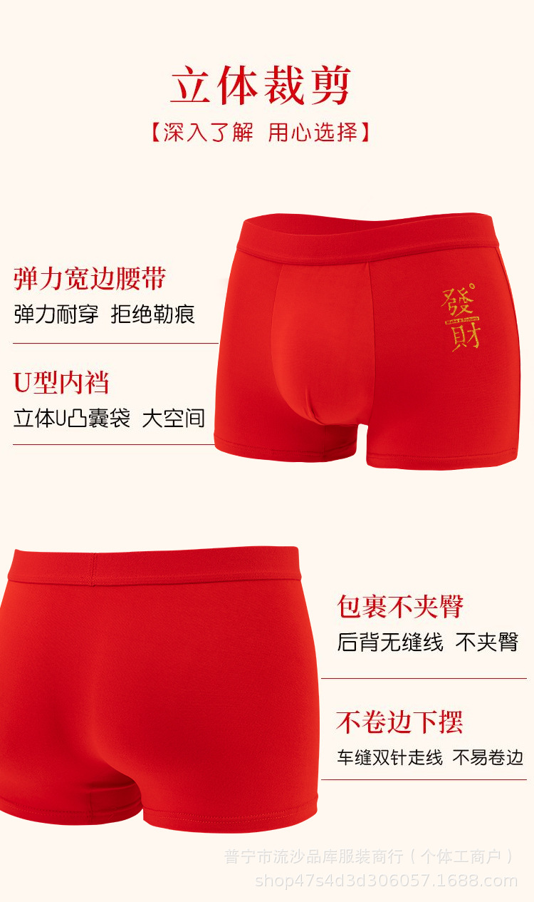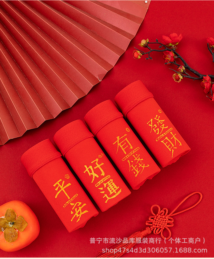 레드 벤밍 니안 남자 복서 새해 축제 중간 허리 통기성 느슨한 플러스 사이즈 바닥 바지 남자 복서 반바지
