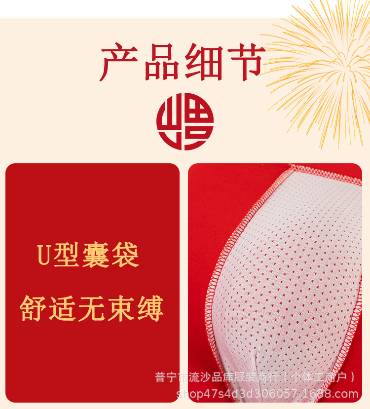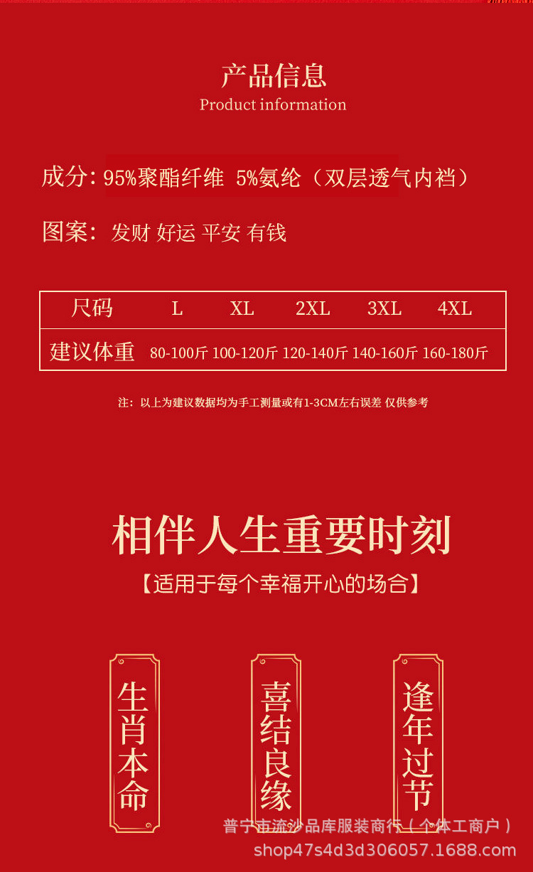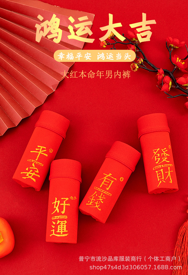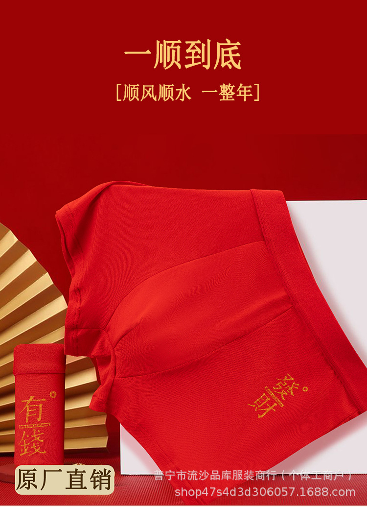 레드 벤밍 니안 남자 복서 새해 축제 중간 허리 통기성 느슨한 플러스 사이즈 바닥 바지 남자 복서 반바지