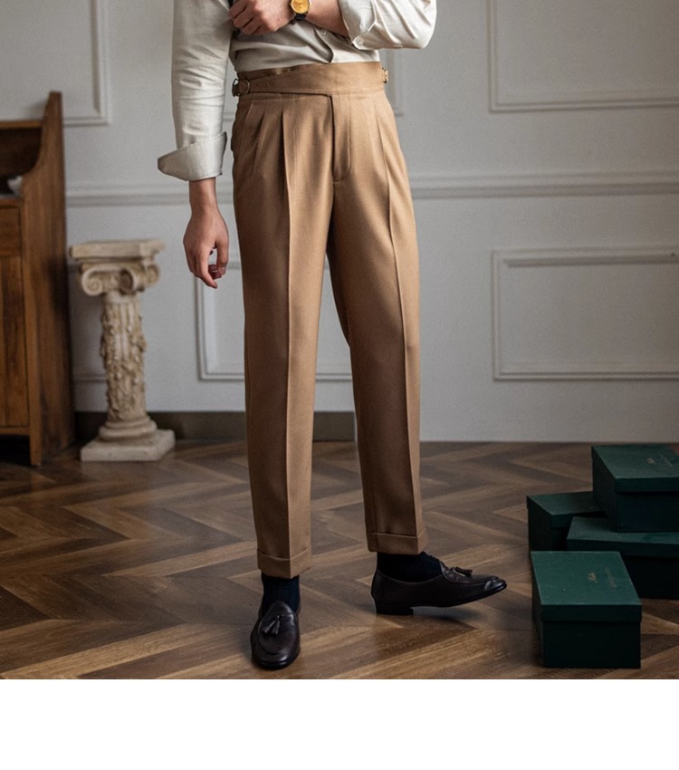 가을과 겨울 영국 스타일 높은 허리 스트레이트 바지 남자의 느슨한 비 다림질 사업 나폴리 캐주얼 바지