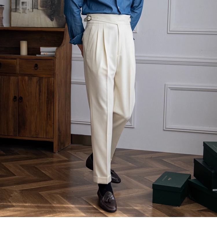 가을과 겨울 영국 스타일 높은 허리 스트레이트 바지 남자의 느슨한 비 다림질 사업 나폴리 캐주얼 바지스토어 가기