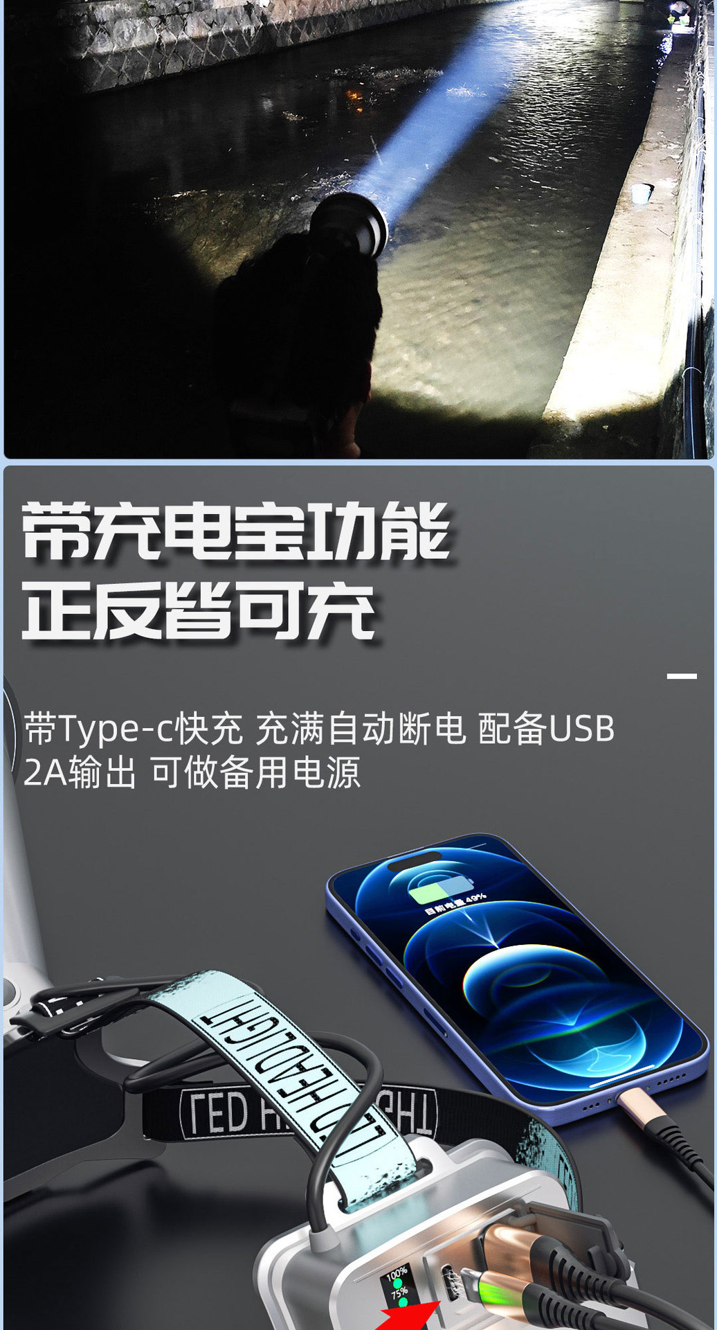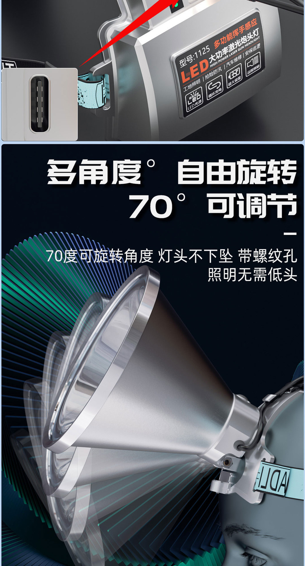 밤 낚시 강한 빛 충전 분할 램프 높은 전력 긴 내구성 LED 레이저 헤드 라이트 일정한 전류 헤드 마운트 슈퍼 밝은스토어 가기