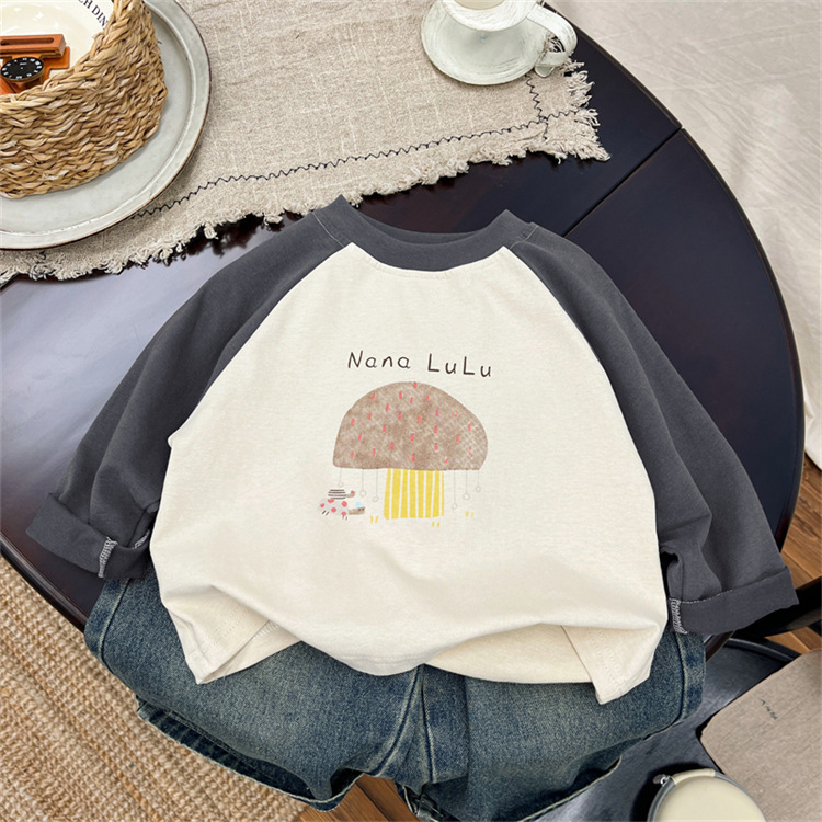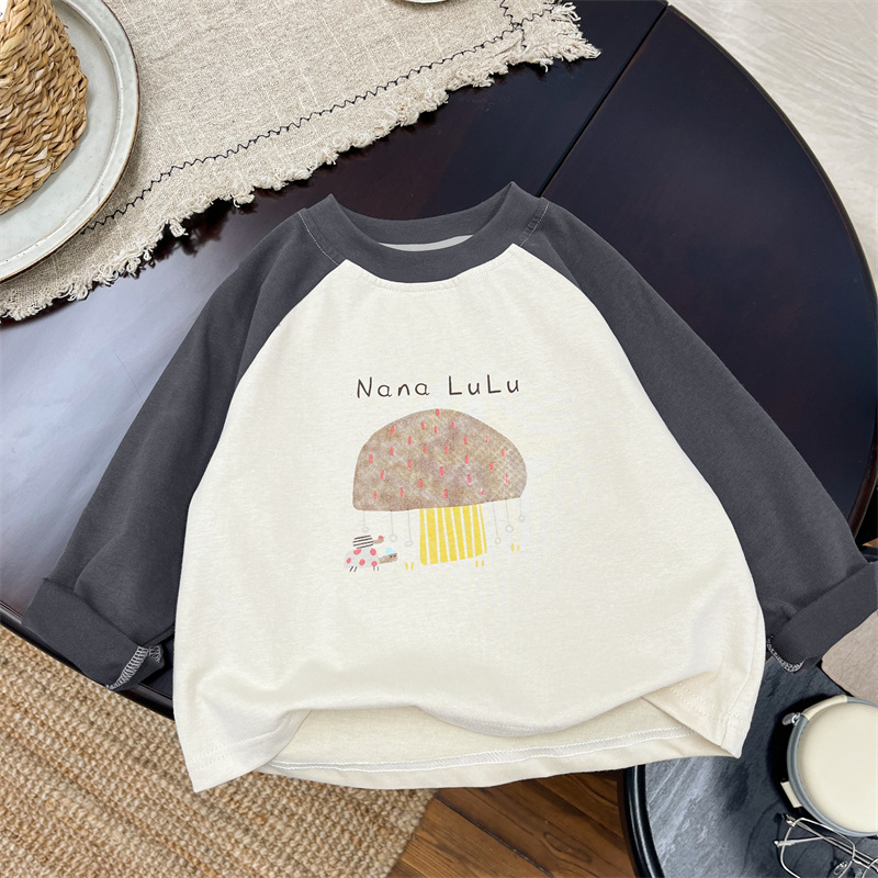 소년 가을 의류 2025 새로운 어린이 티셔츠 긴팔 베이비 컬러 매칭 라운드 넥 만화 바닥 셔츠 캐주얼 탑 유행스토어 가기