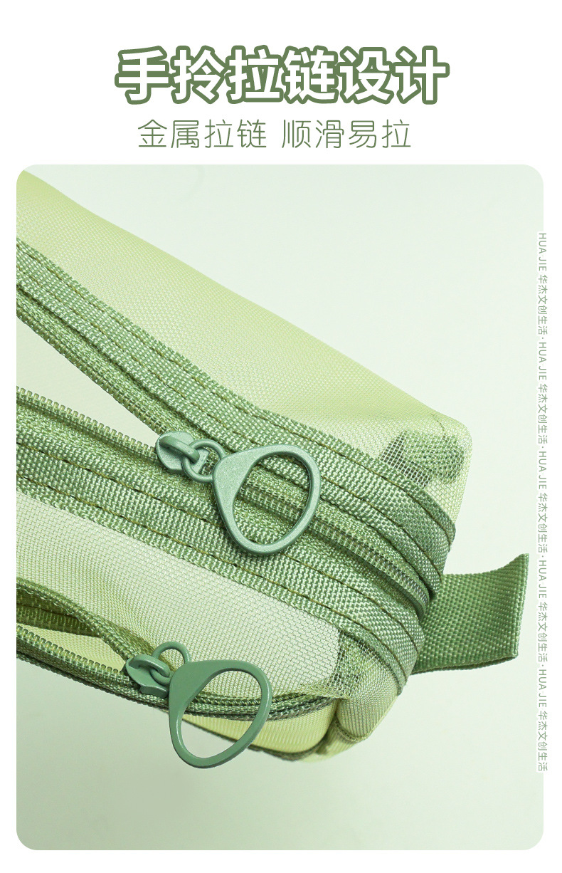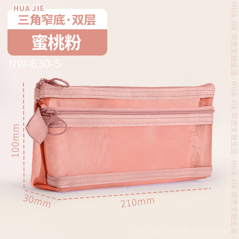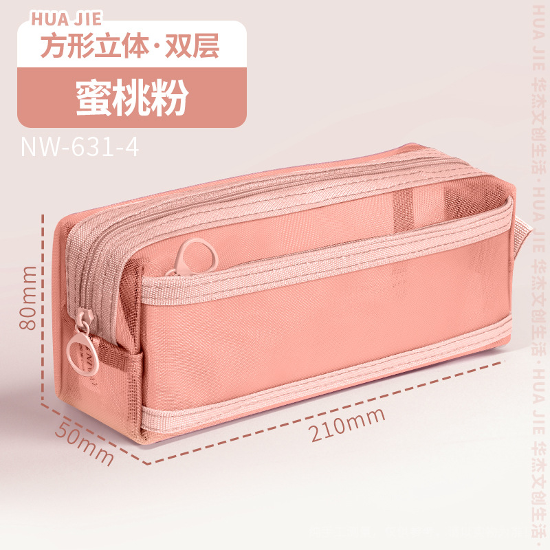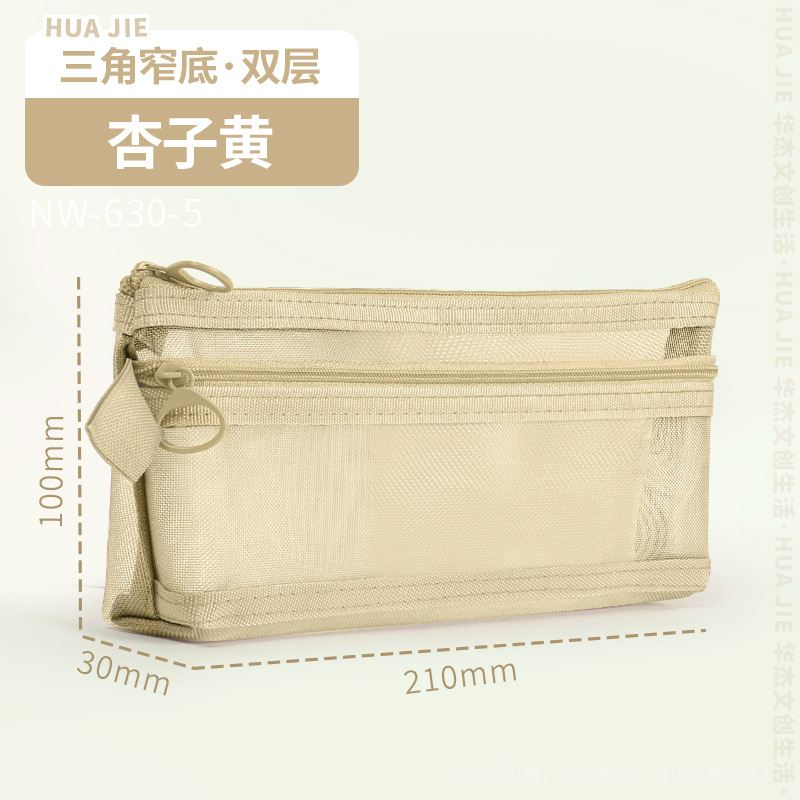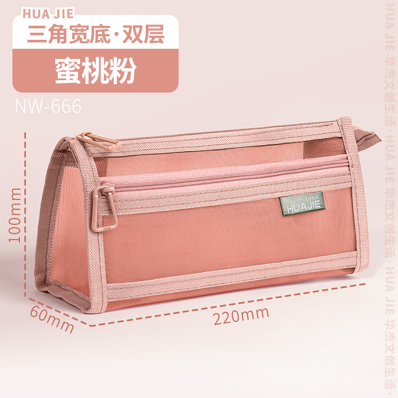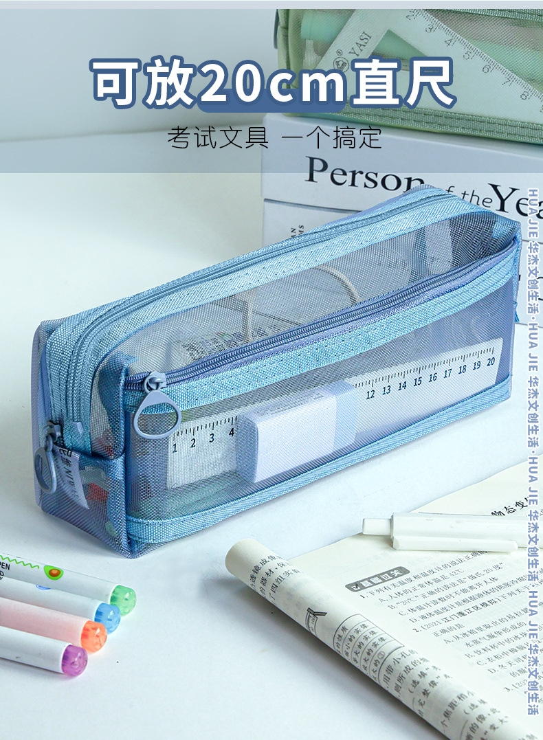 Huajie 메쉬 연필 가방 더블 레이어 대용량 투명 문구 가방 학생 시험 연필 가방 높은 색상 값 간단한