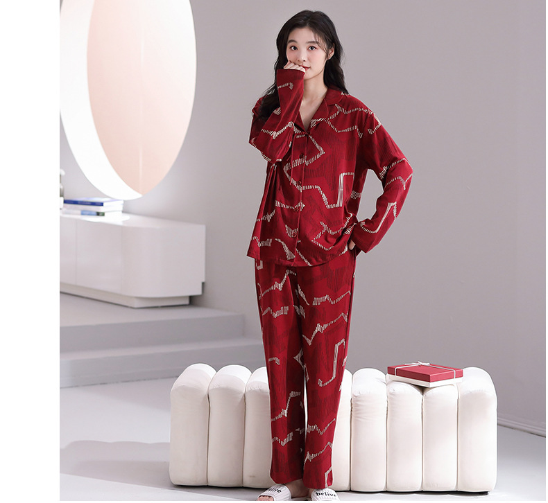 양면 타이트 매치 코튼 애호가 파자마 가을 긴팔 바지는 캐주얼 남성 및 여성용 홈 의류 세트 밖에서 입을 수 있습니다.