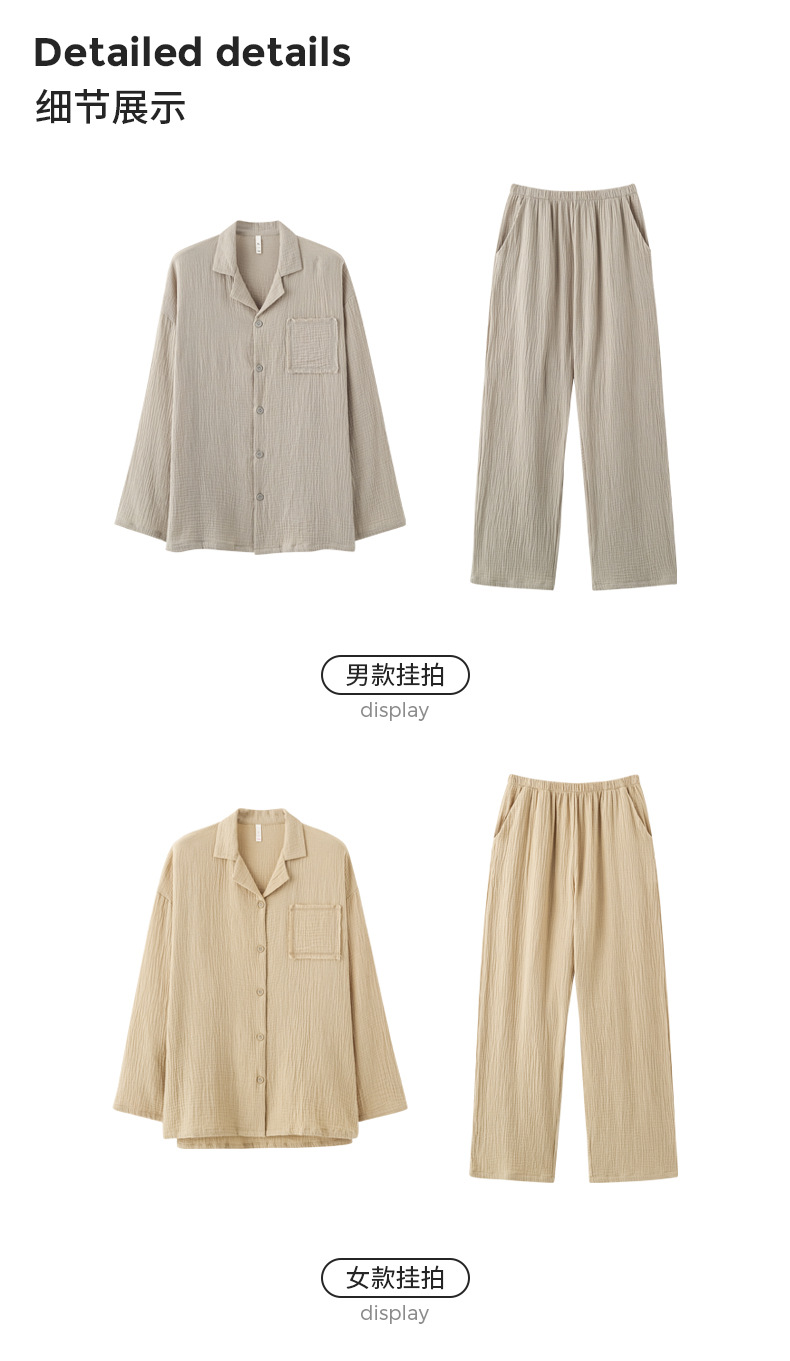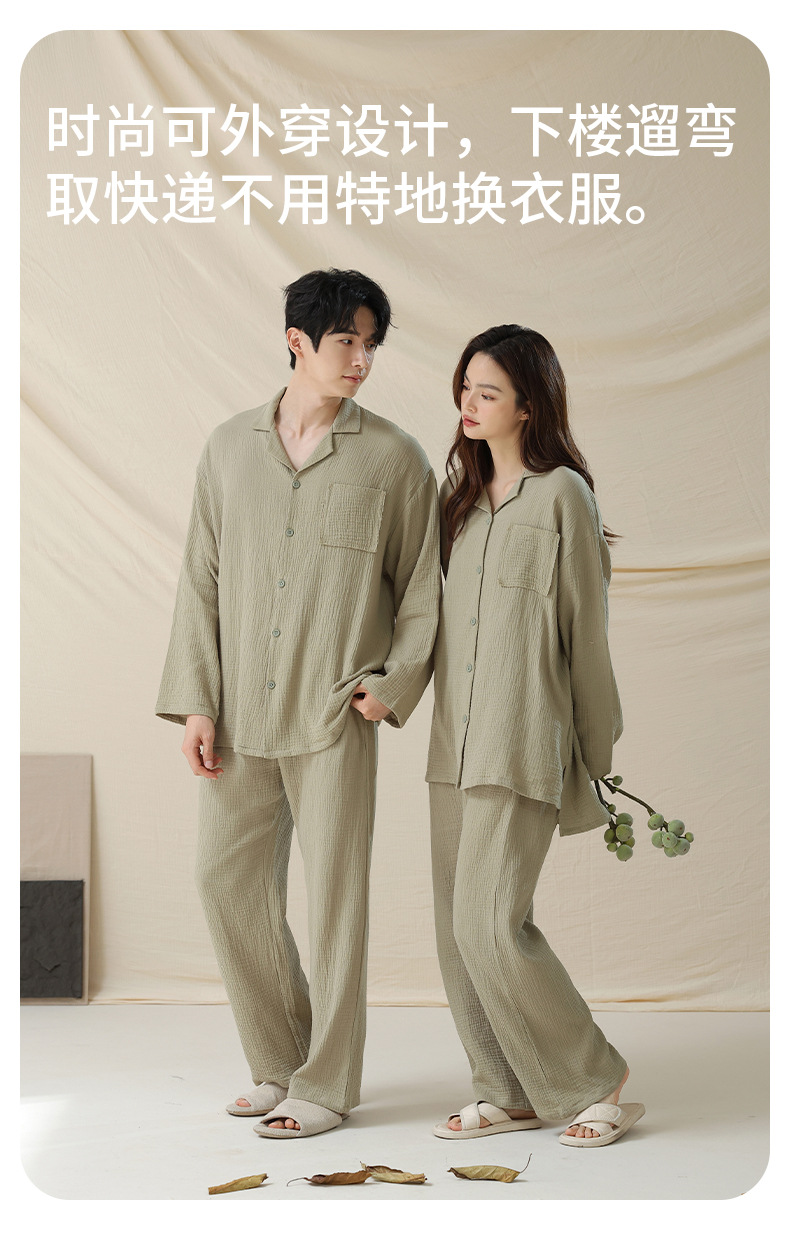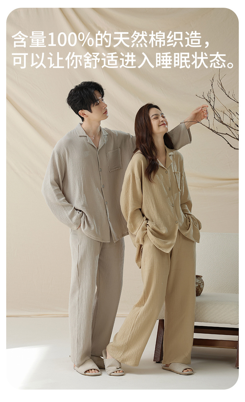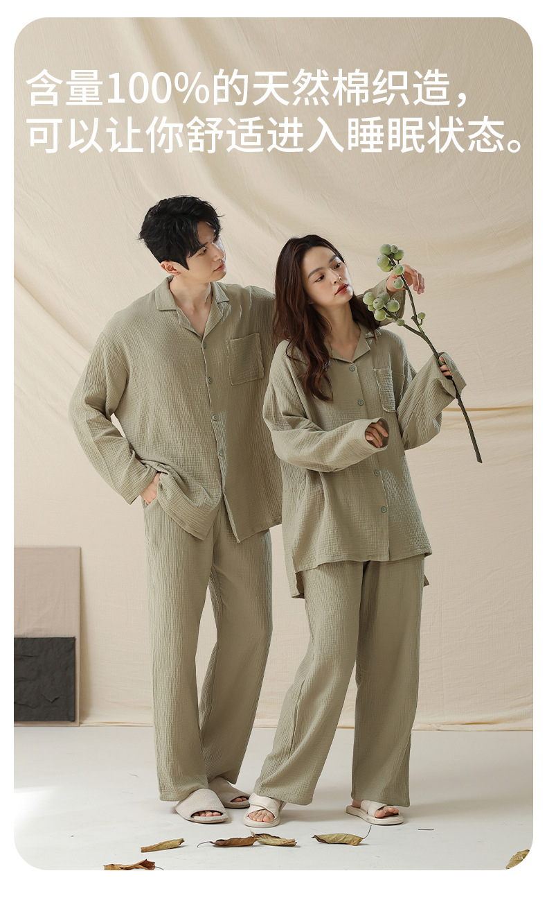 아기용 순면 A급 100% 순면 이중사 순면 커플 잠옷 여성용 가을 긴팔 긴바지 남성용 홈웨어스토어 가기