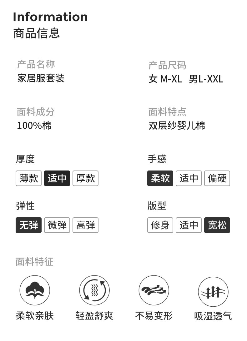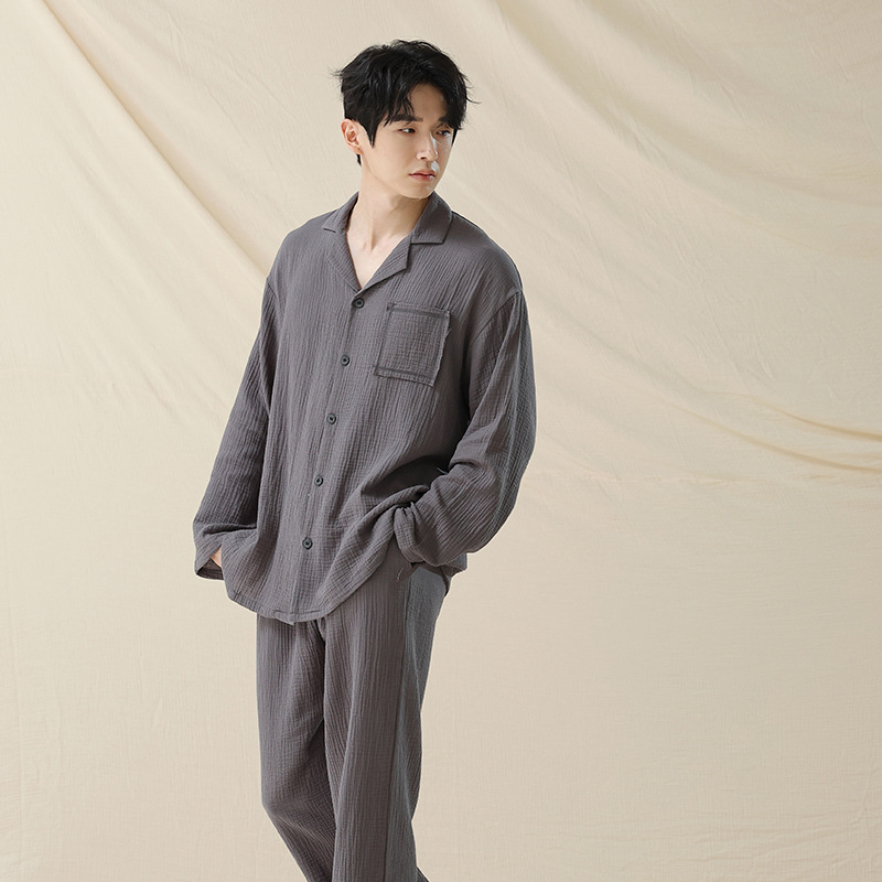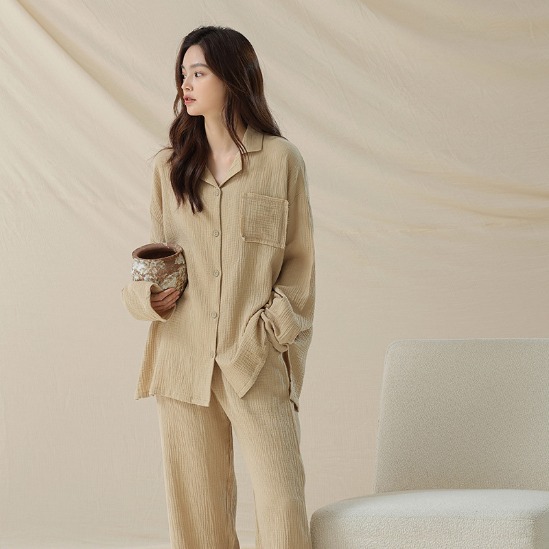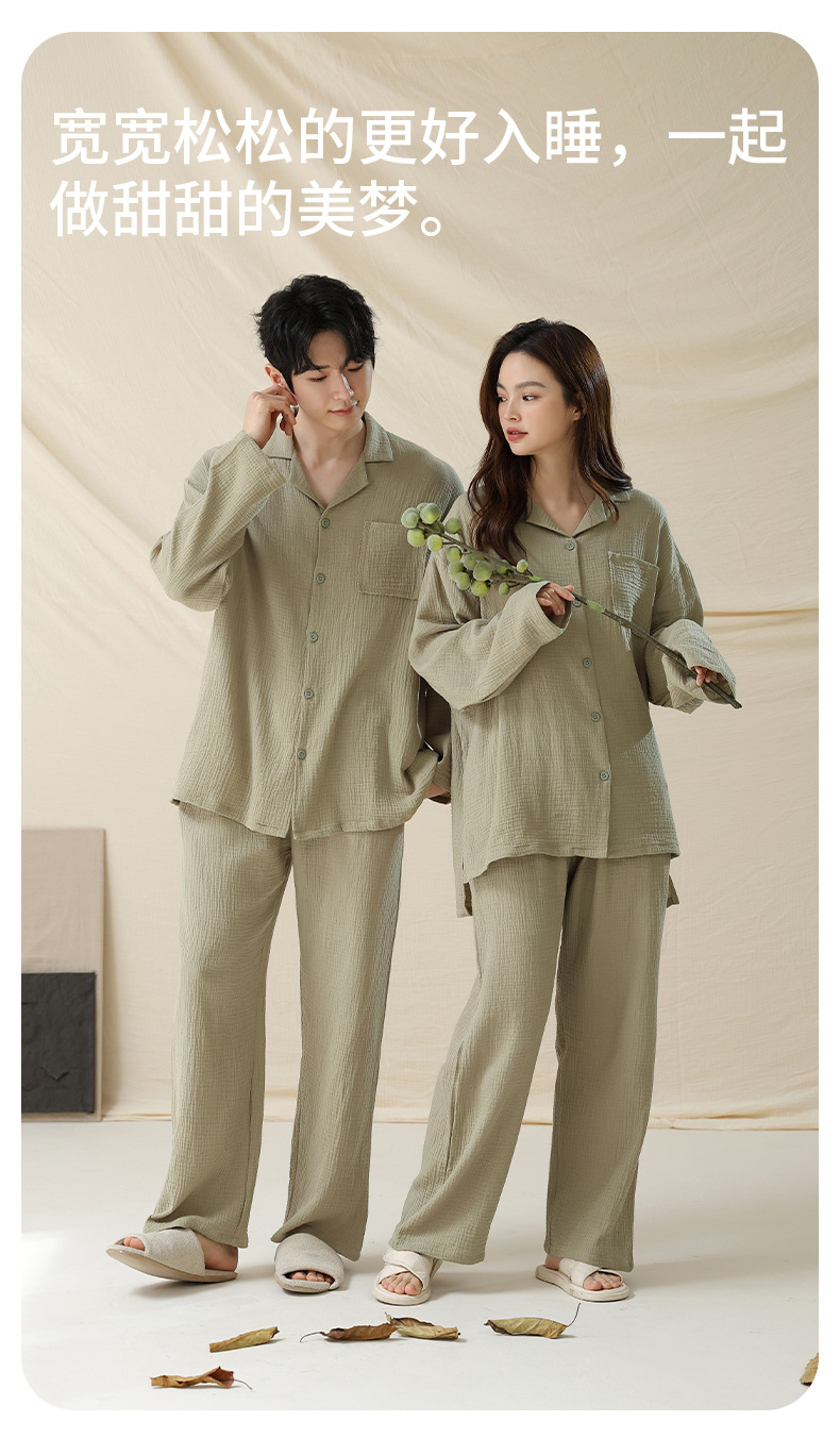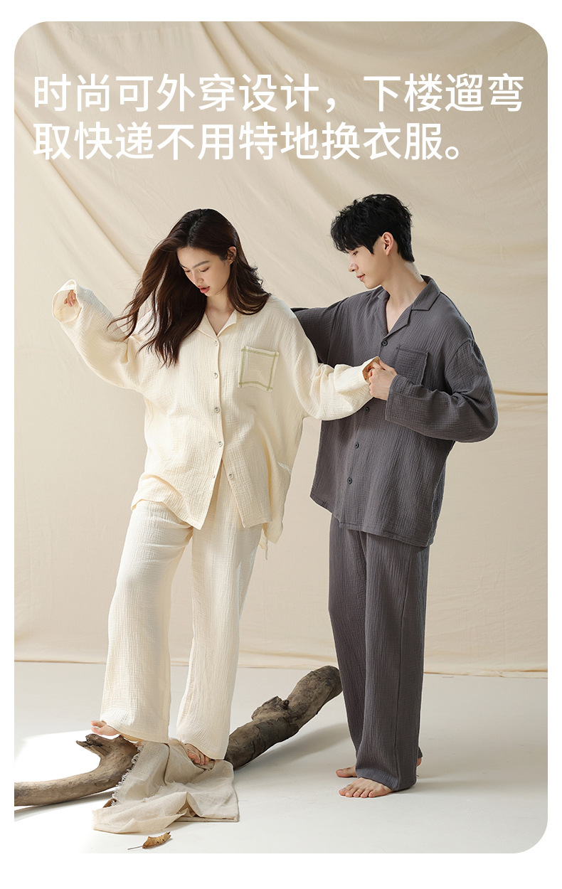 아기용 순면 A급 100% 순면 이중사 순면 커플 잠옷 여성용 가을 긴팔 긴바지 남성용 홈웨어스토어 가기