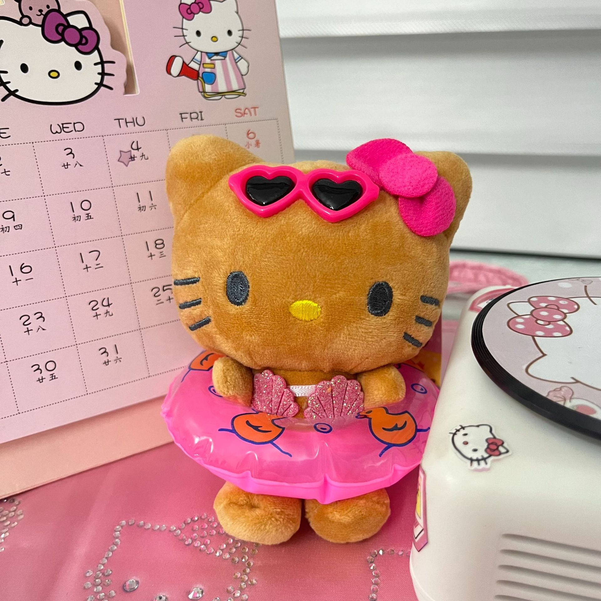 만화 산리오 하와이 수영 반지 검은 가죽 KT 키 체인 펜던트 인형 소녀 가방 교수형 인형스토어 가기