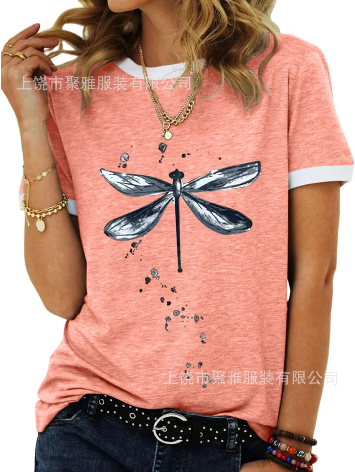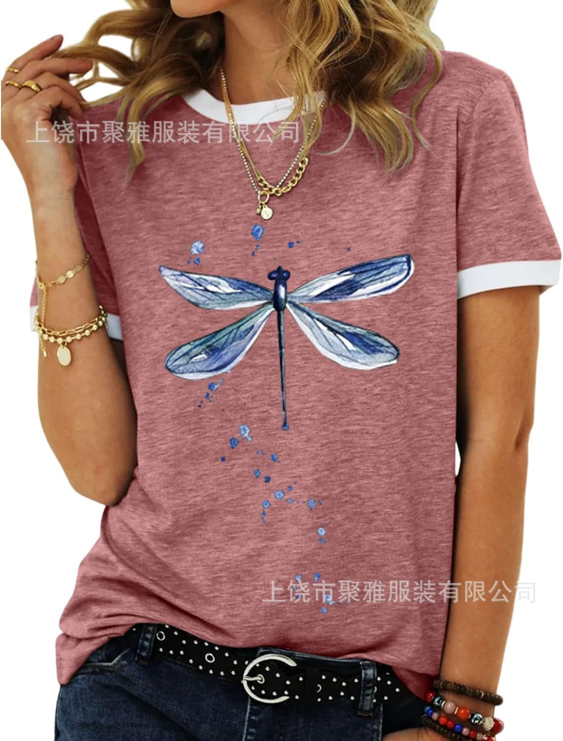 아마존 뜨거운 만화 꽃 인쇄 짧은 소매 여성 티셔츠 국경 유럽 및 미국 여성 의류, 맞춤형 공장 직접 판매 지도