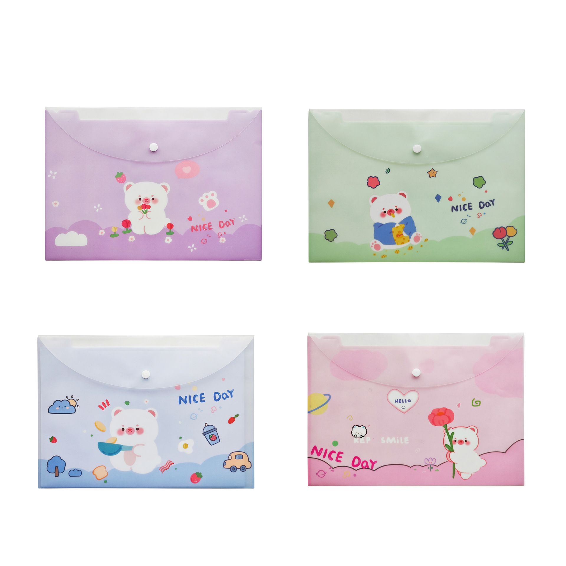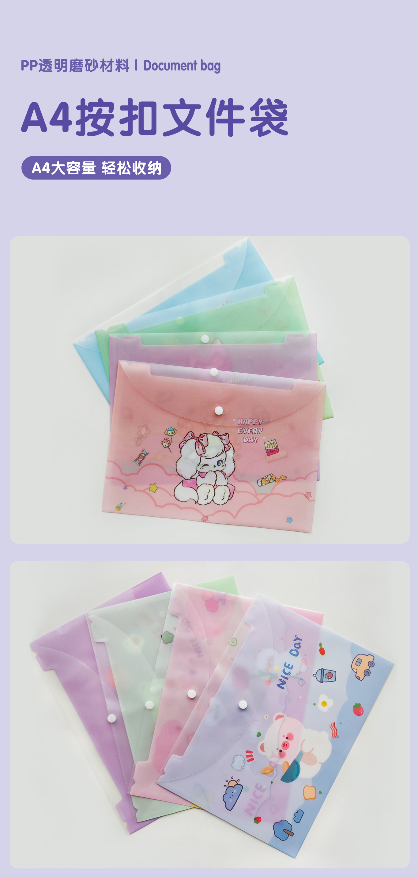 재고 투명 파일 가방 A4 학생 문구 PP 저장 가방 만화 스냅 파일 가방 도매