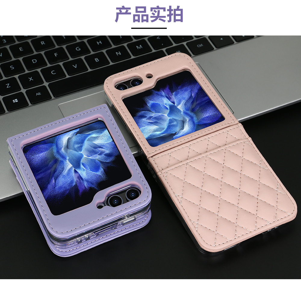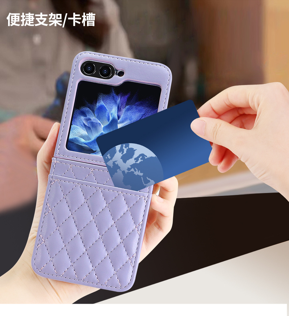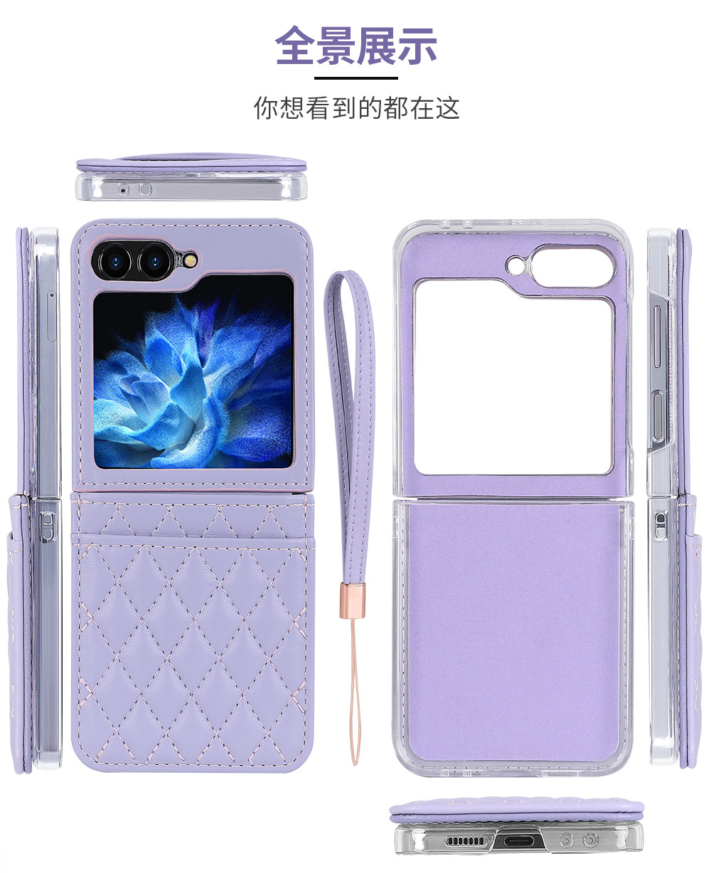 삼성 Flip6 휴대 전화 케이스 일본과 한국 스타일의 샤넬 스타일 Rhomboid 카드 Lanyard Flip5 4 휴대 전화 케이스