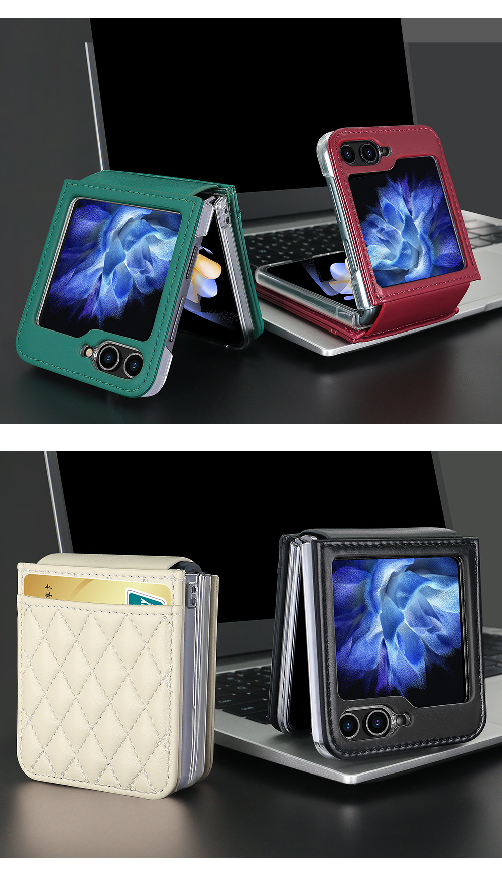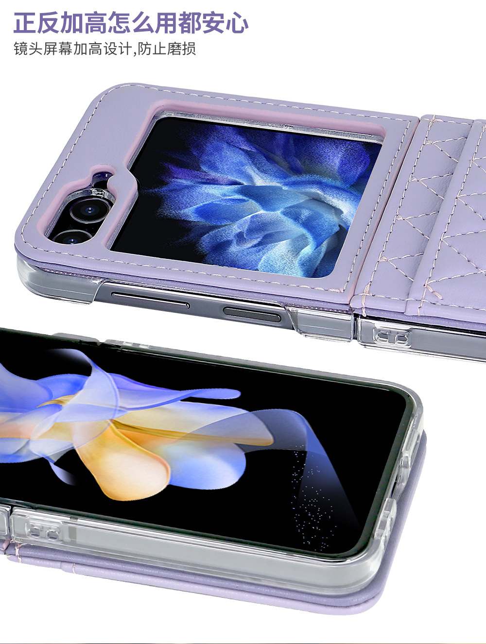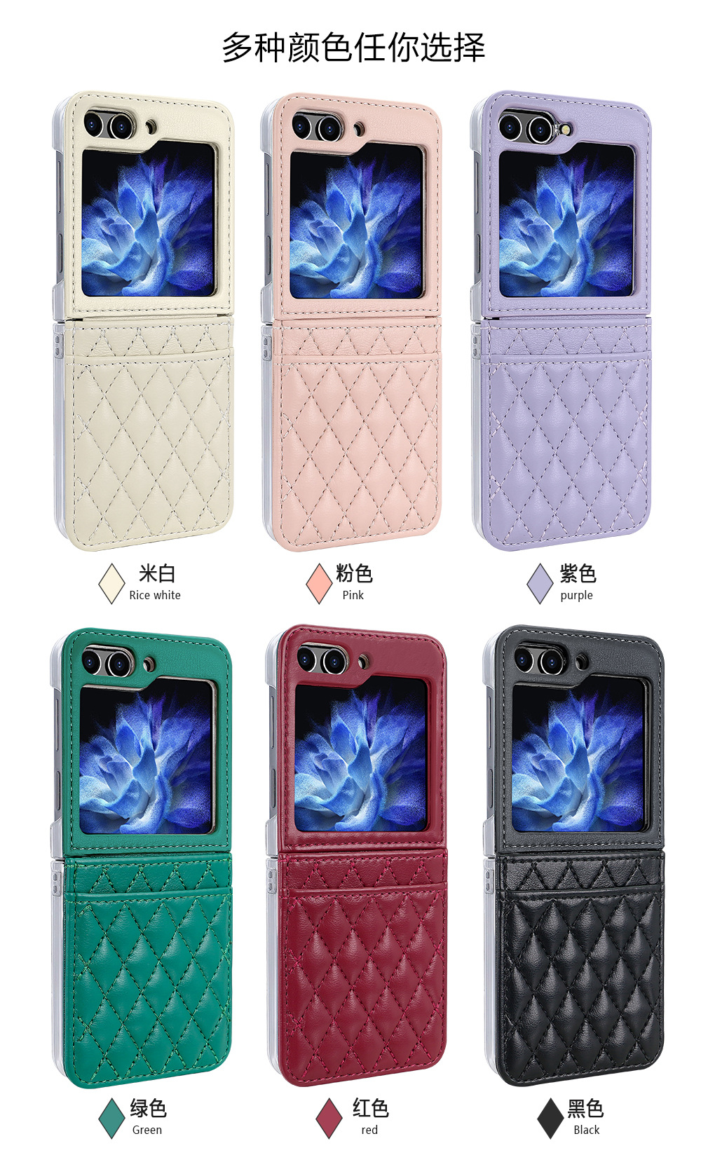 삼성 Flip6 휴대 전화 케이스 일본과 한국 스타일의 샤넬 스타일 Rhomboid 카드 Lanyard Flip5 4 휴대 전화 케이스