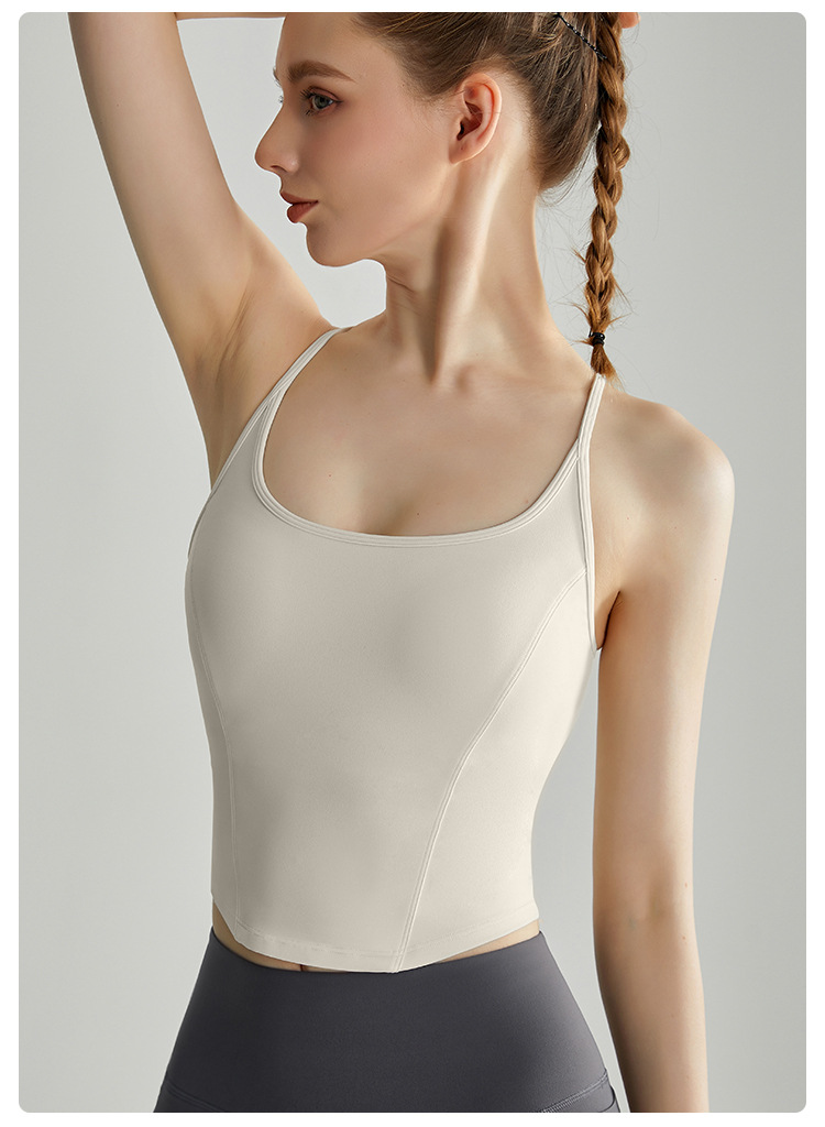 LAHN 섹시 스포츠 조끼 여성용 고정컵 롱 스타일 속건성 일체형 충격방지 고강도 스포츠 브라