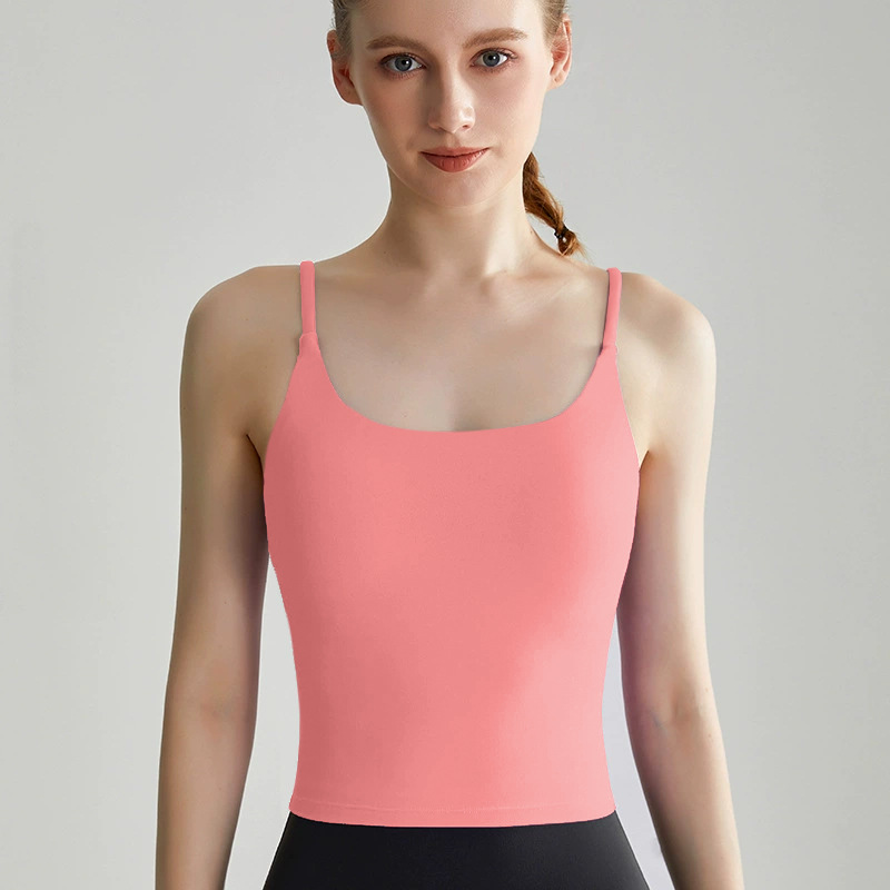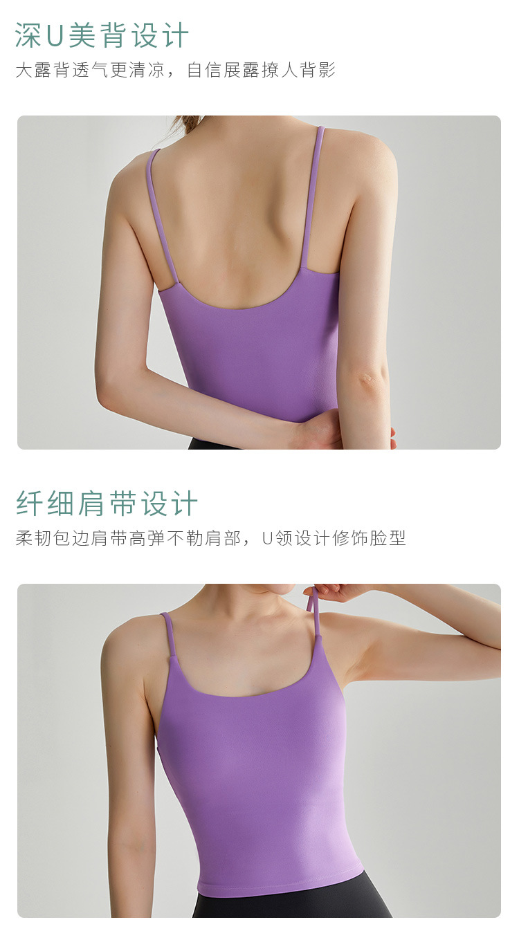 LAHN 고강도 피트니스 조끼, 가슴 패드가 있는 긴 스타일, 일체형 충격 방지 푸시업 빅 U 뷰티 백 요가 스포츠 브라
