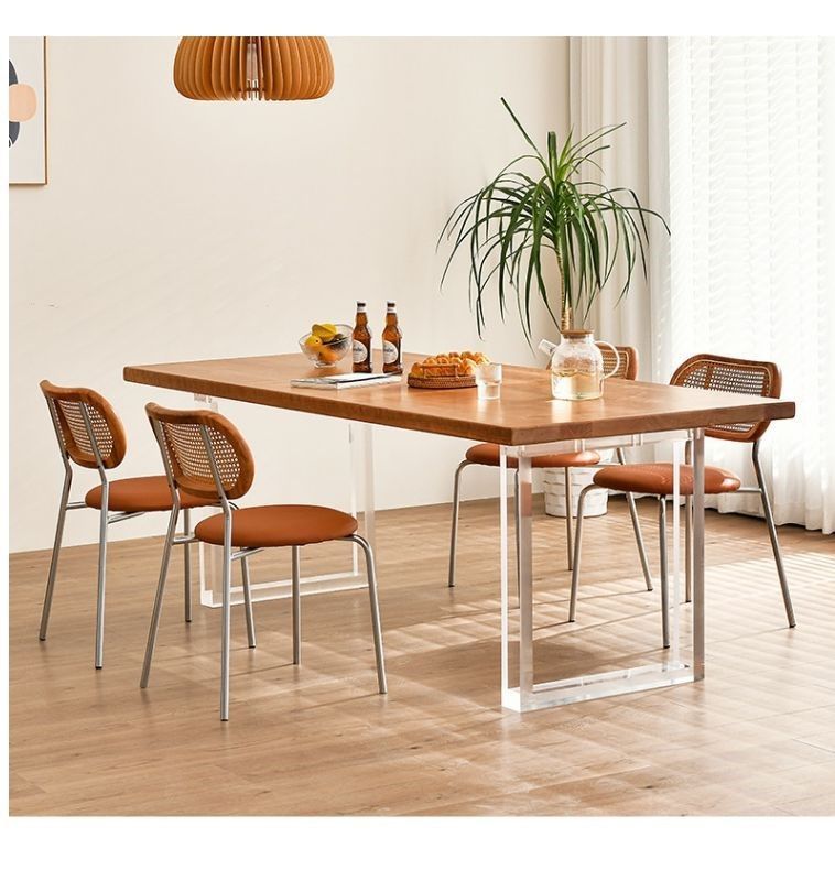 체리 우드 서스펜션 테이블 아크릴 테이블 다리 투명 단단한 나무 대형 보드 테이블 가정용 테이블 로그 스타일 다이닝 테이블스토어 가기