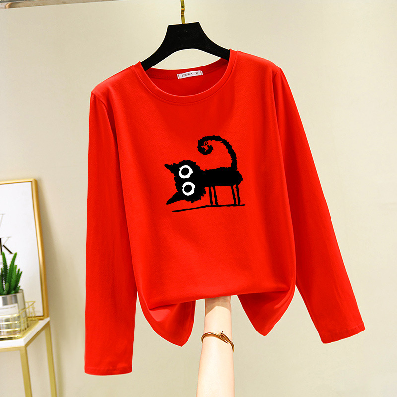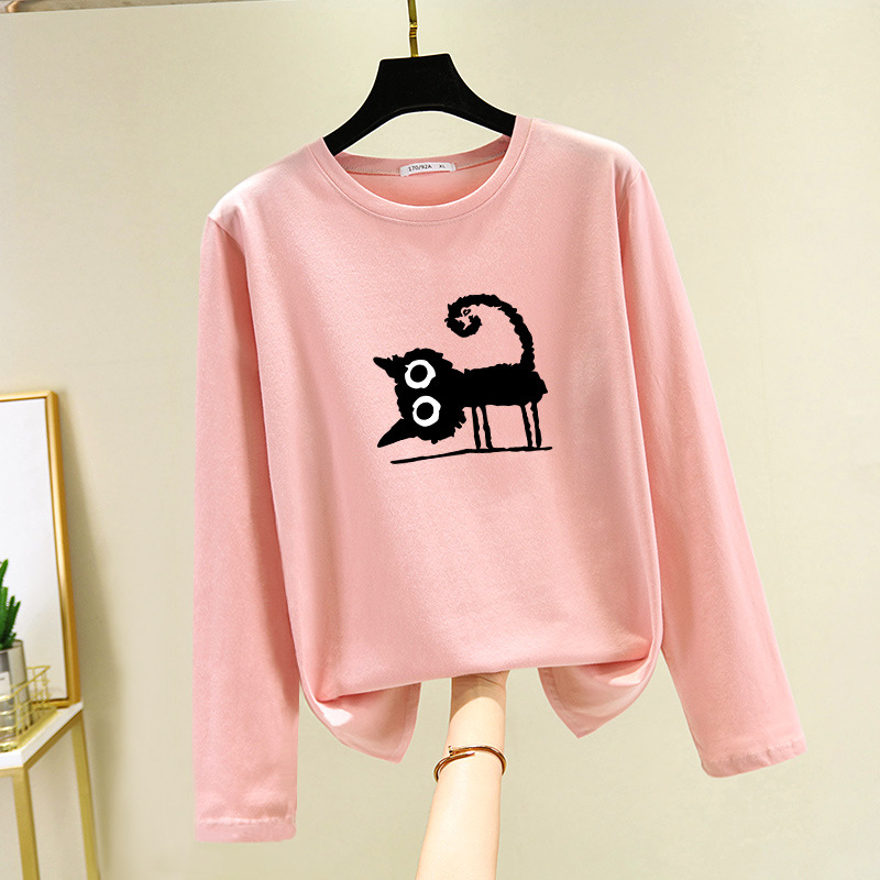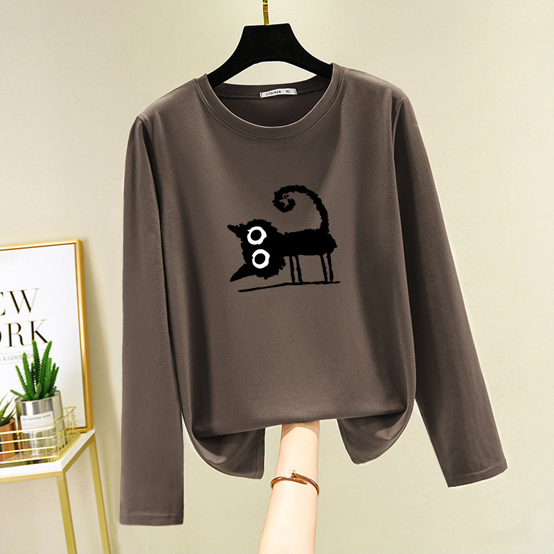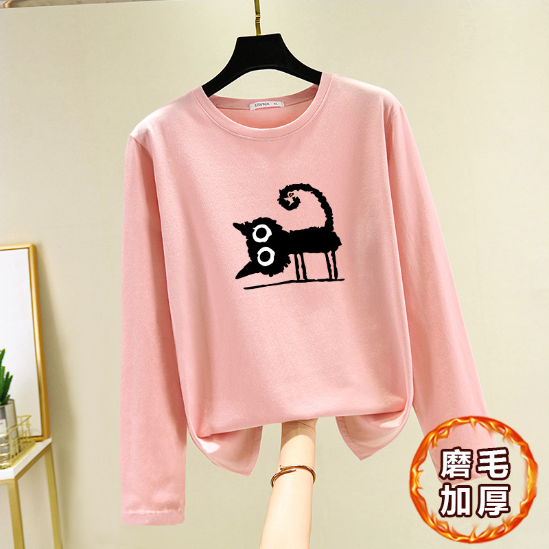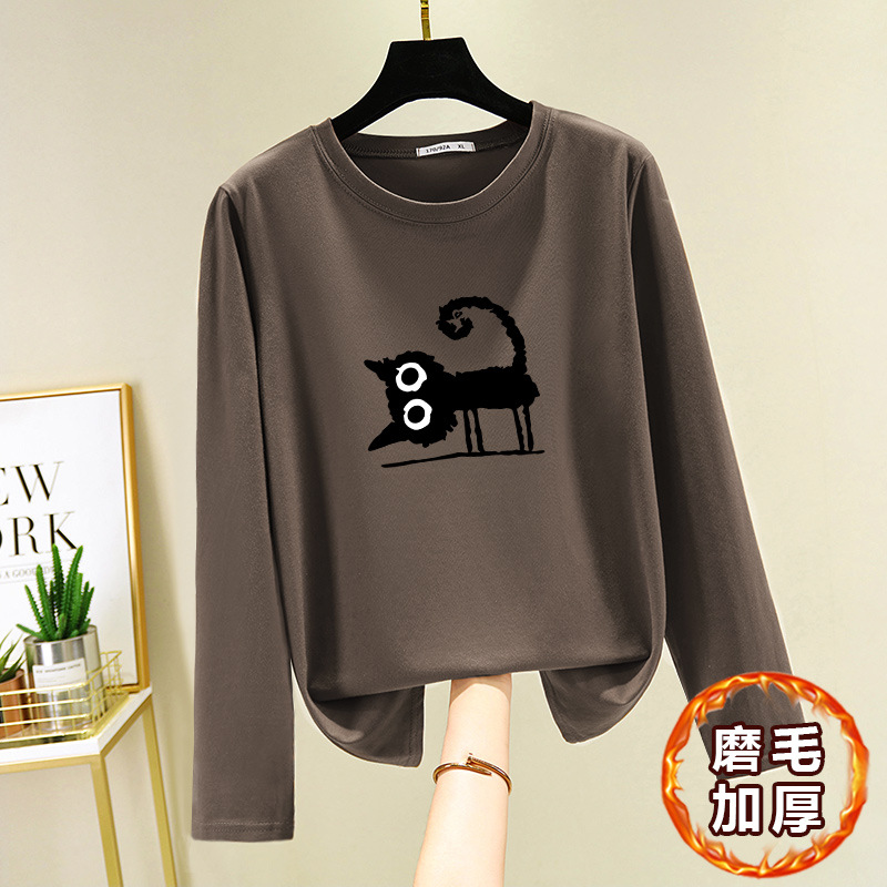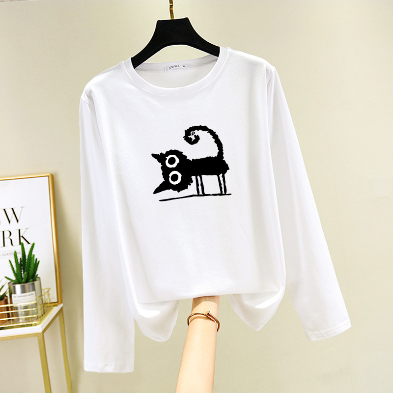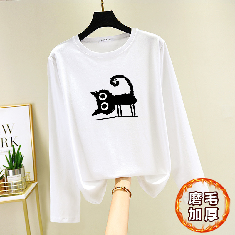 면화 긴 소매 티셔츠 샌딩 새로운 유행 서양식 느슨한 플러스 사이즈 여성 최고 봄과 가을베이스 셔츠 여성용 내부 셔츠스토어 가기