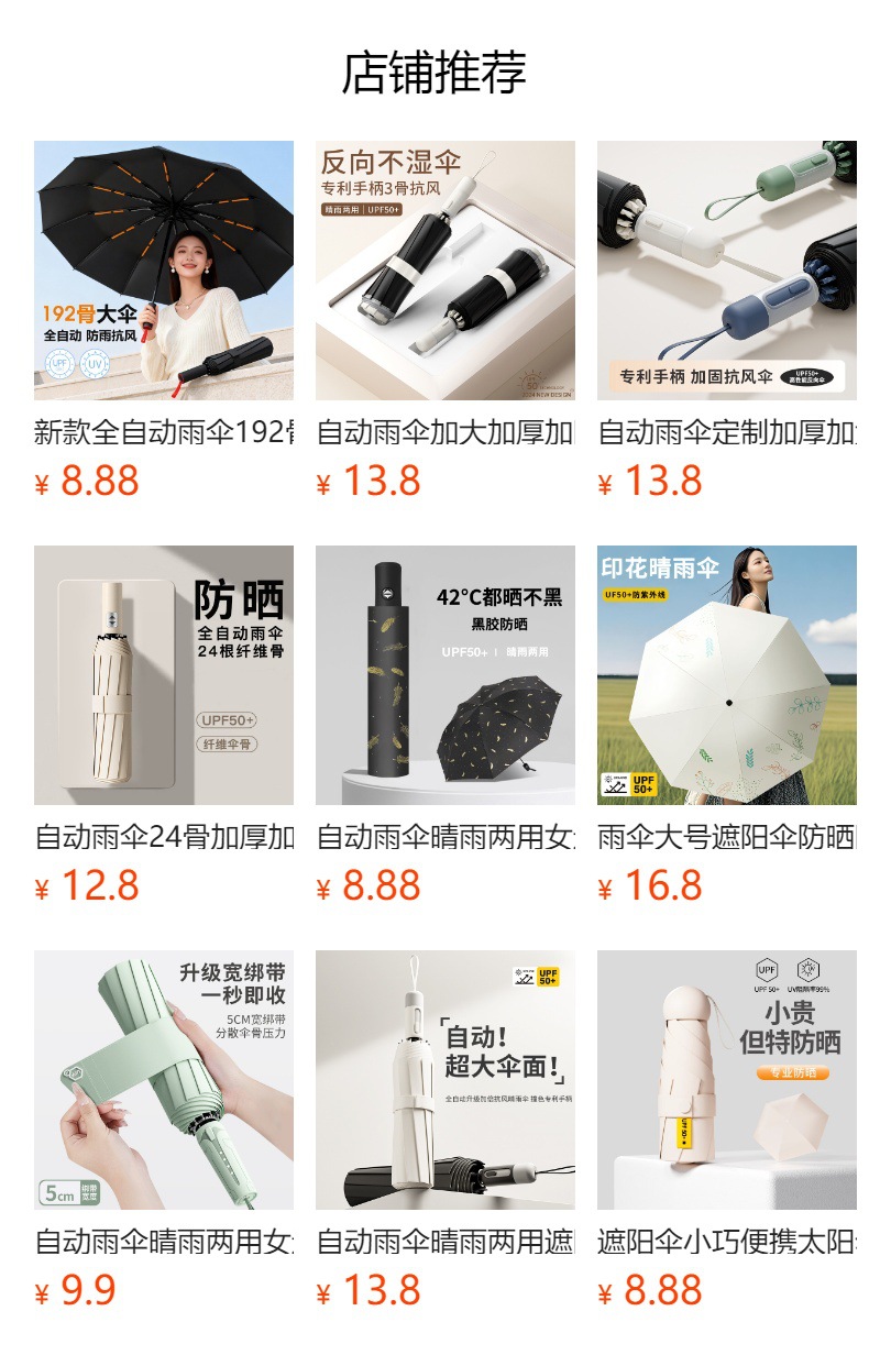 인기 자동 우산, 두꺼워지고 확대된 접이식 양용 우산, 햇빛 차단 및 자외선 차단, 여성용 우산 도매스토어 가기
