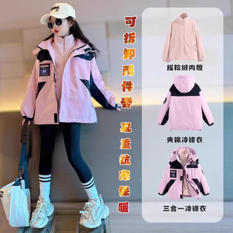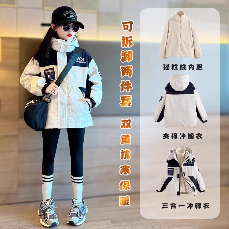 어린이 코트 여아 러시 옷 따뜻한 면 새 스타일 중대형 어린이 소녀 Huzhou Zhili 겨울 3 대 1스토어 가기