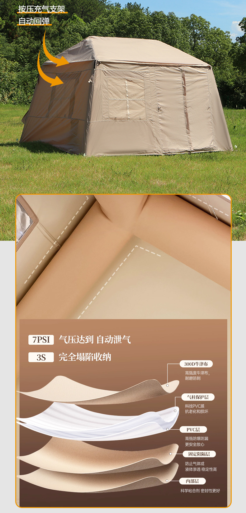 야외 휴대용 캠핑 캠핑 풍선 텐트 두꺼운 비방 자동 무료 텐트 숲 오두막