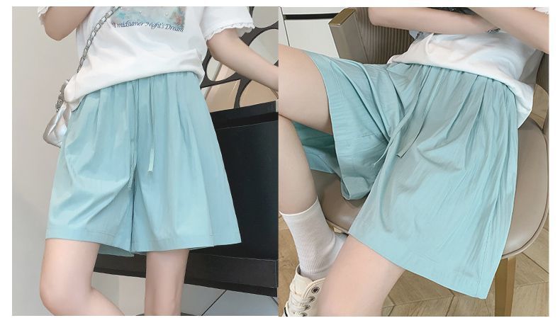 여름 얇은 높은 허리 넓은 다리 캐주얼 아이스 실크 반바지 여자 5 점 야마모토 작은 아우터웨어 올 매치를위한 중간 길이의 바지 반바지스토어 가기