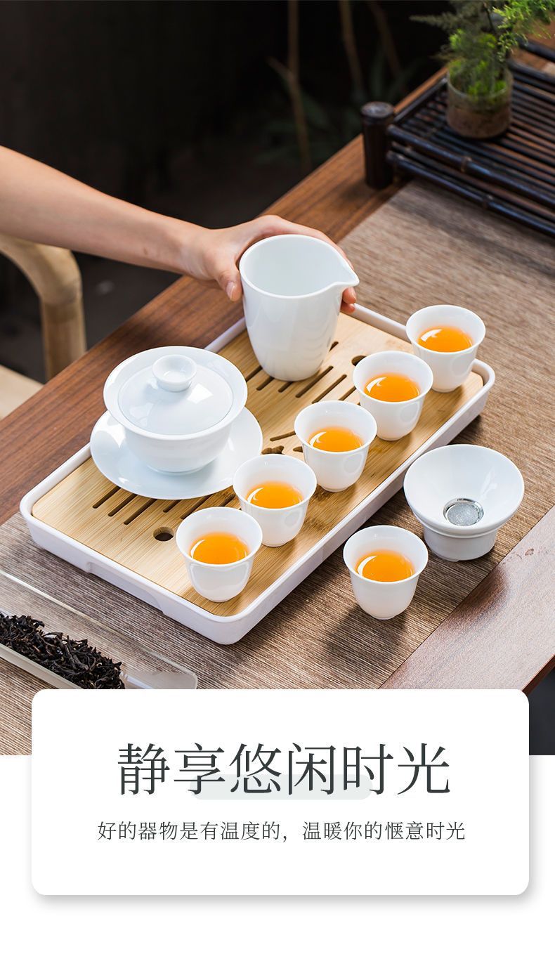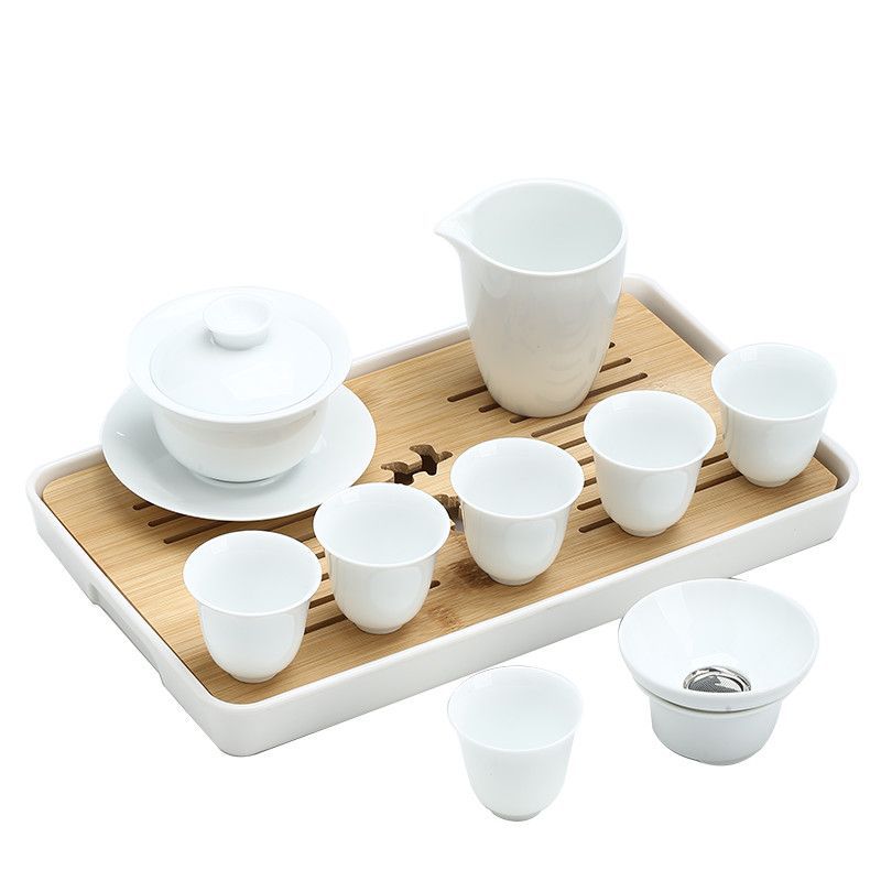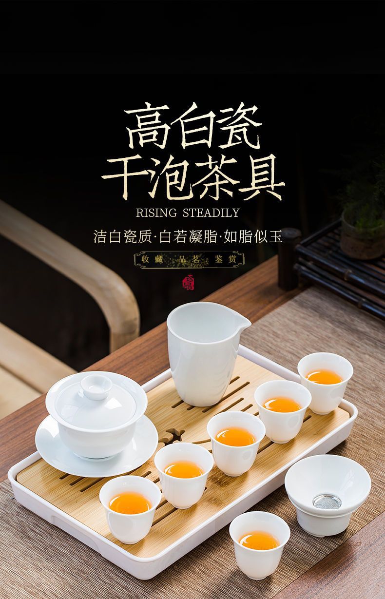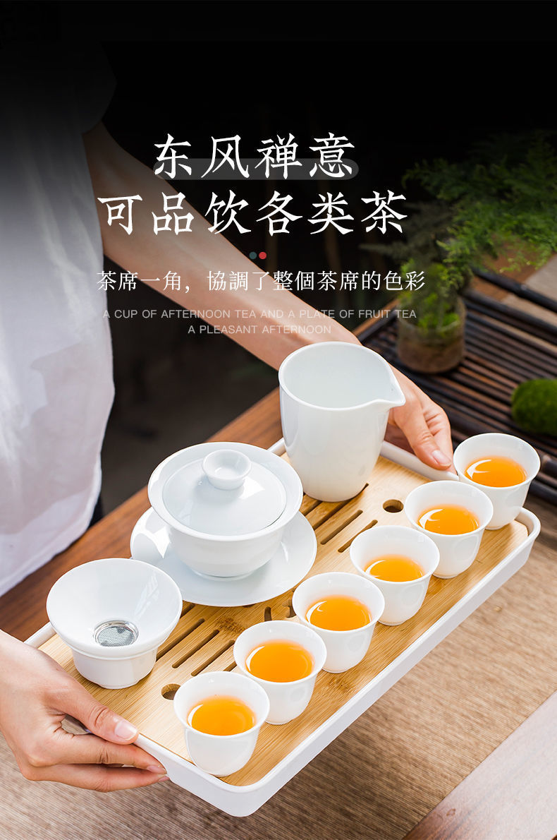 차 세트 공장 직접 흰색 도자기 쿵푸 차 세트 세트 커버 쿵푸 차 세트 간단한 홈 현대 차 트레이 기본 항목스토어 가기