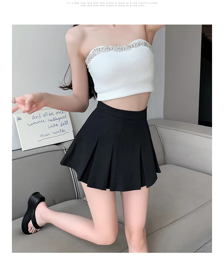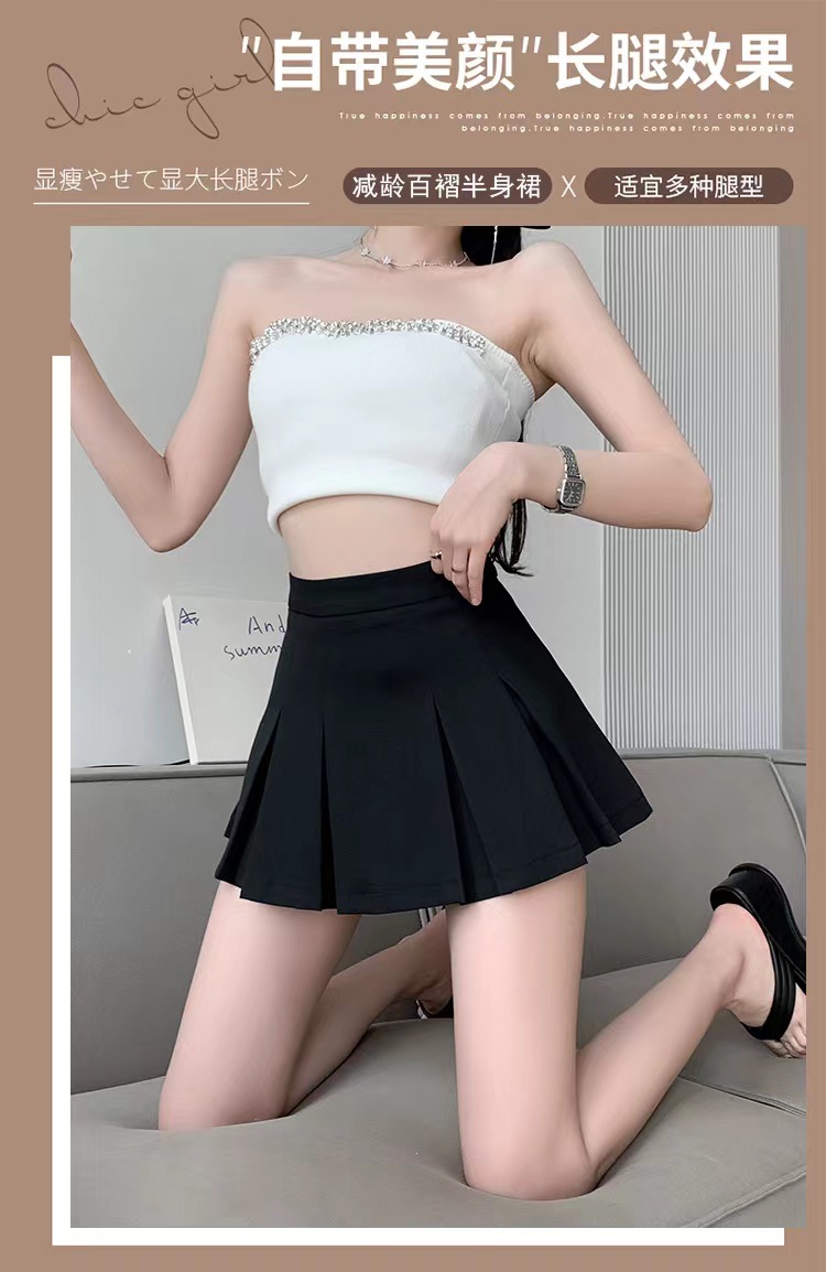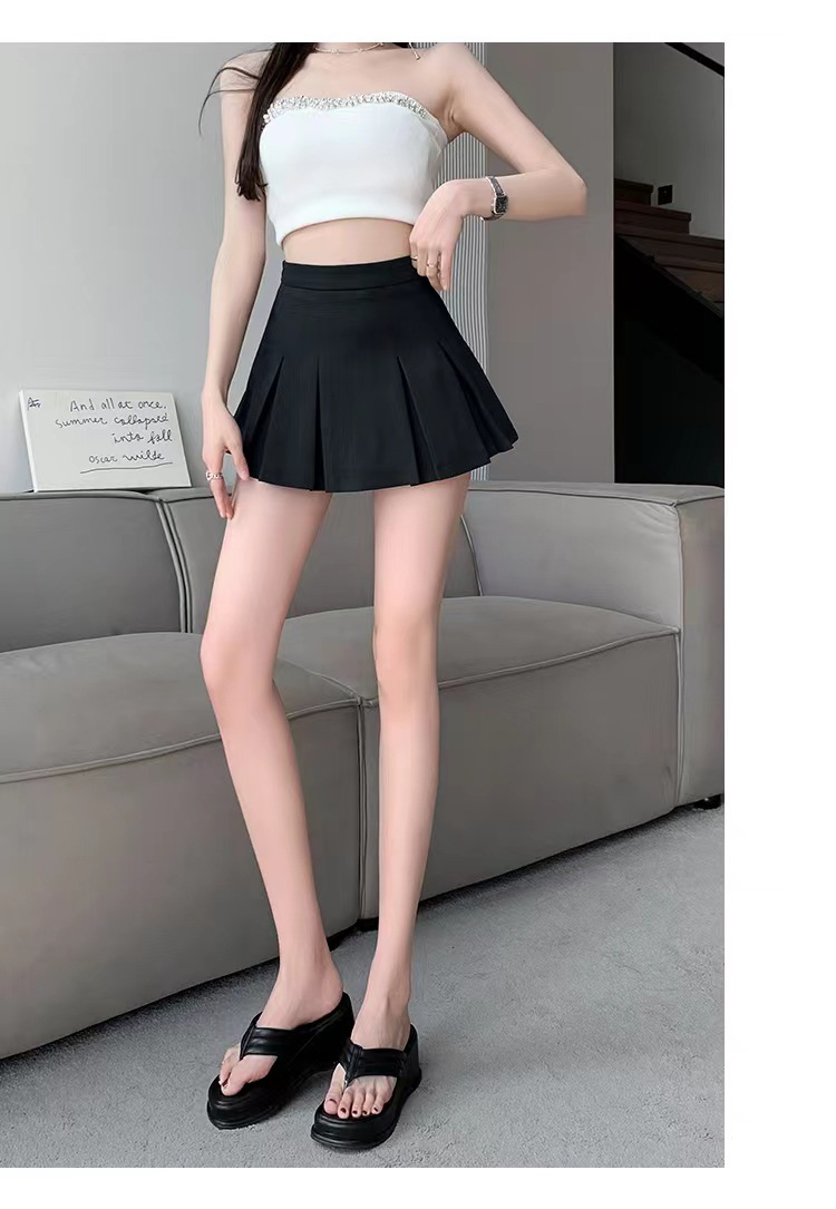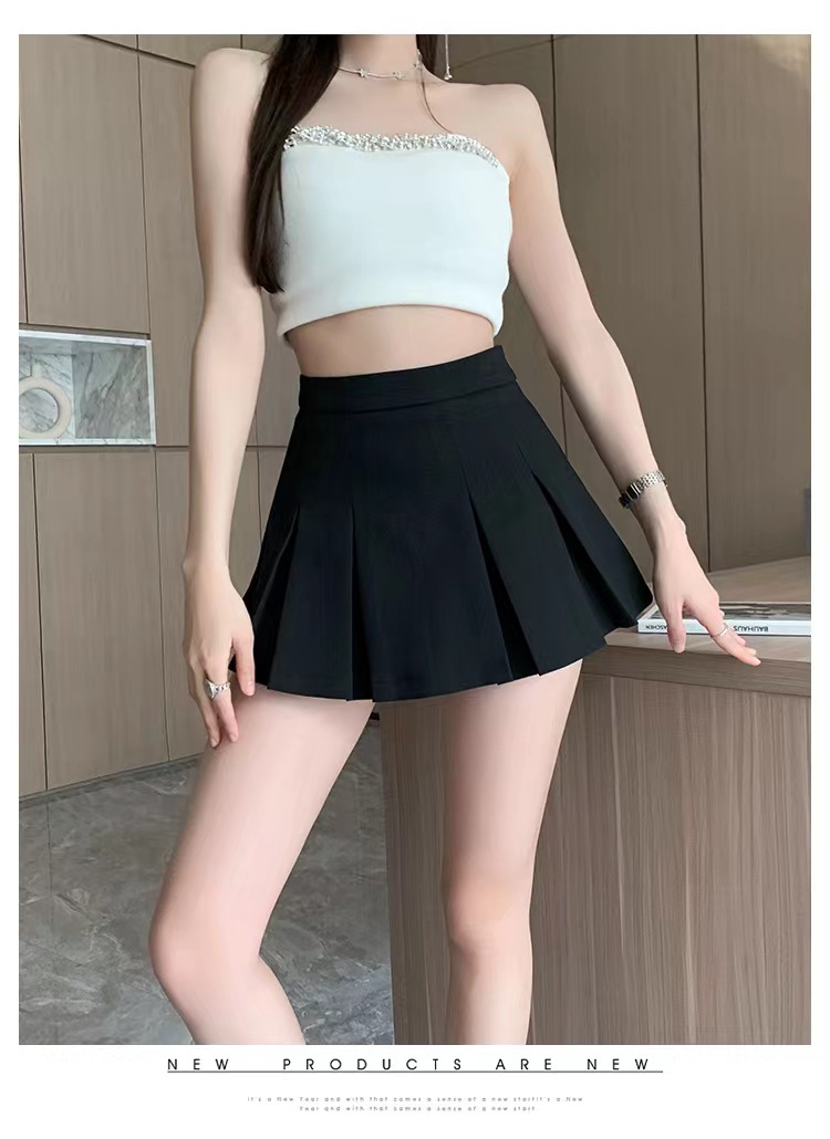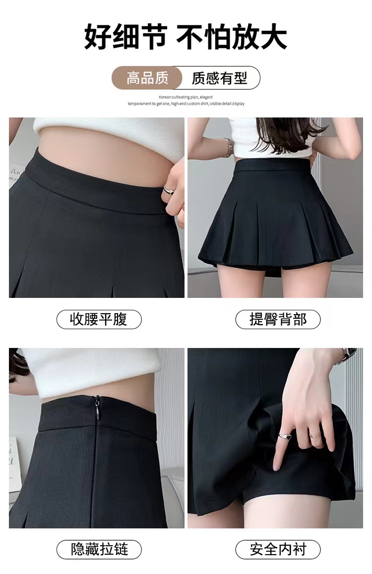 검은 주름 치마 여자 여름 2024 새로운 스타일 스파이스 소녀 짧은 치마 작은 높은 허리 A-라인 세트 치마스토어 가기