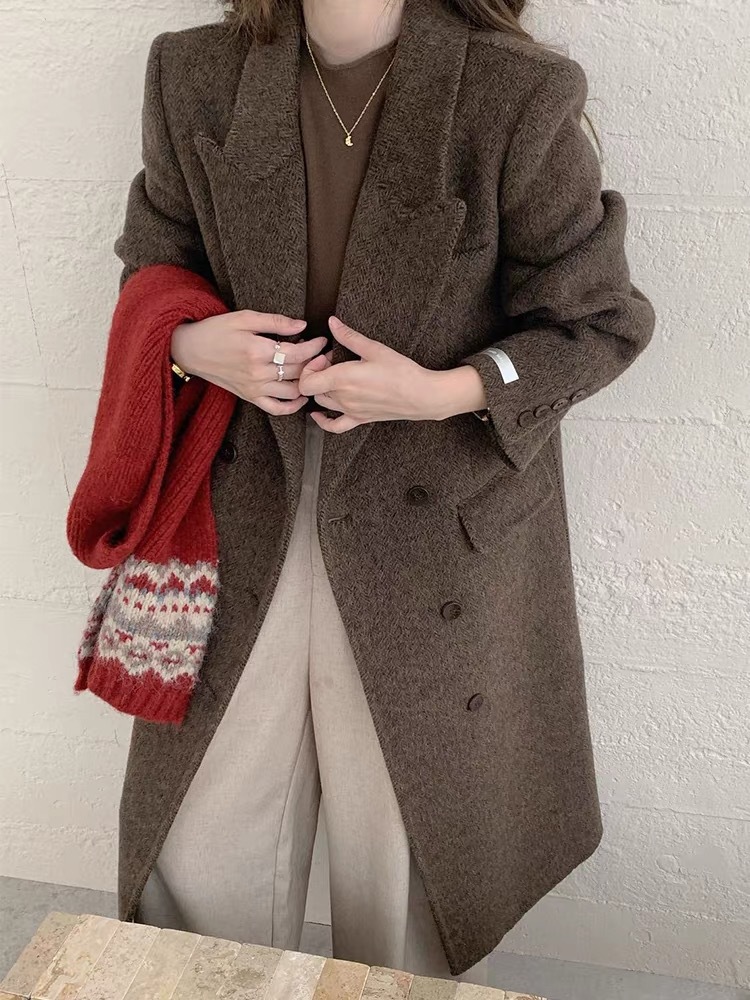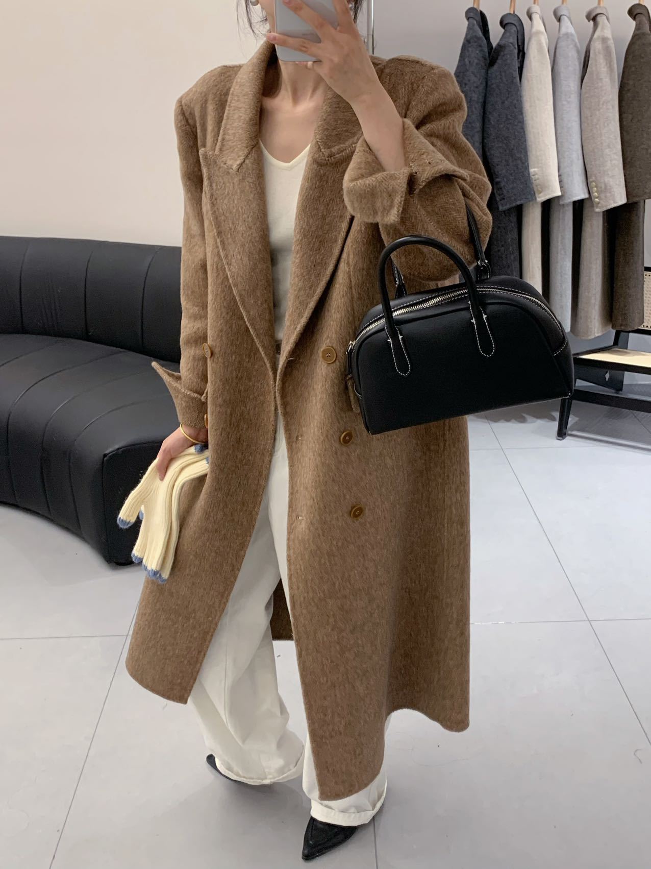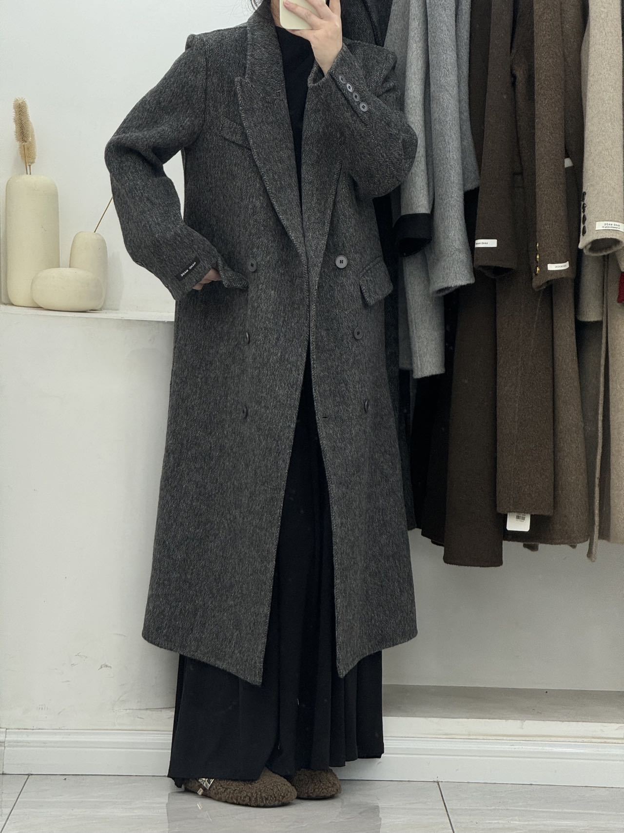 서유럽 8817 어깨 세트 칼라 하이 엔드 센스 라인 한국 양면 양모 코트 캐시미어 봉제 코트스토어 가기