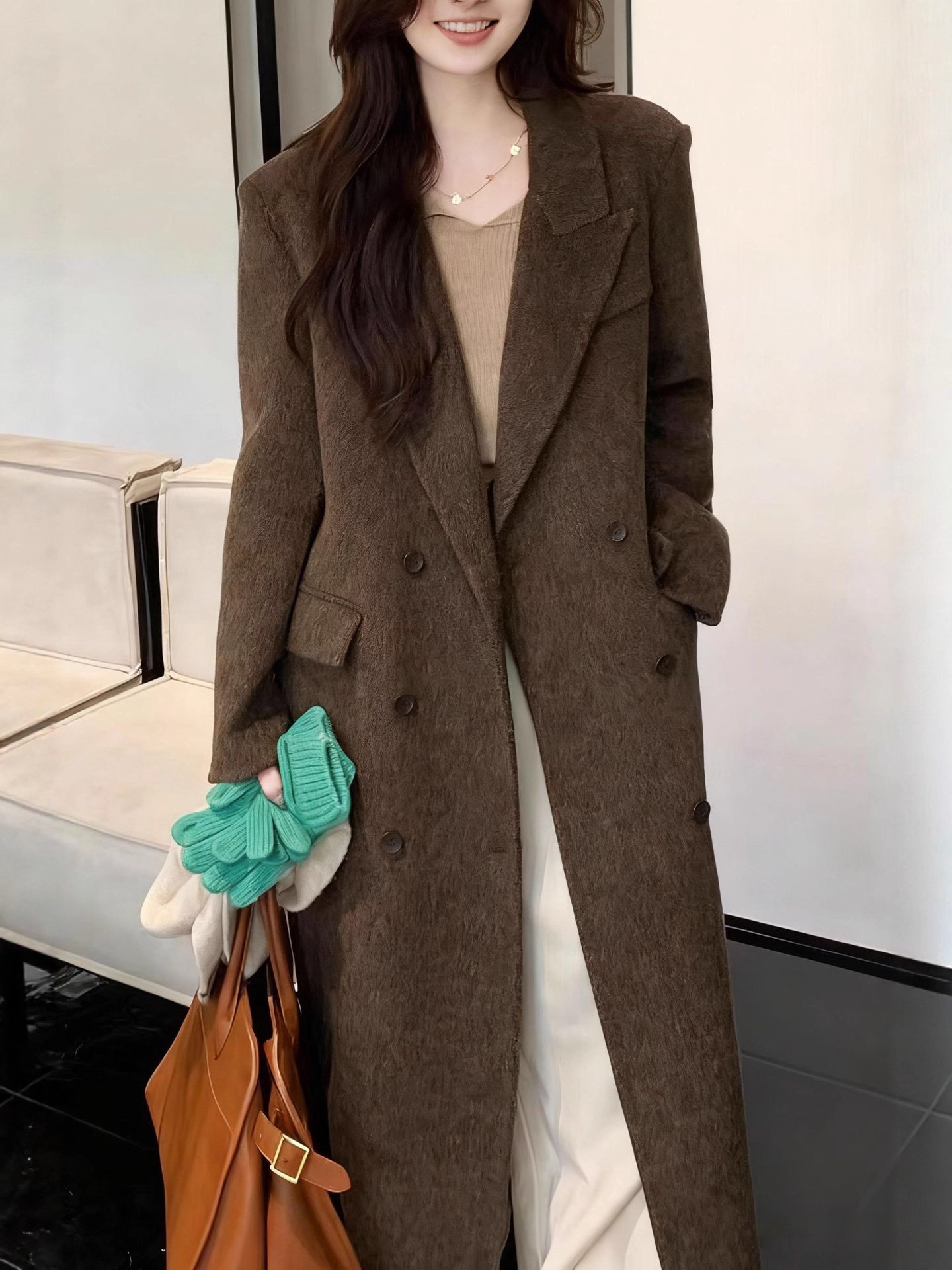 서유럽 8817 어깨 세트 칼라 하이 엔드 센스 라인 한국 양면 양모 코트 캐시미어 봉제 코트