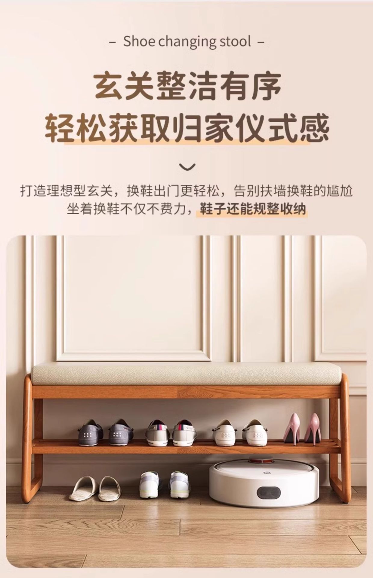 实木换鞋凳家用入户小窄鞋架坐凳一体软包坐垫试门口长凳穿鞋凳子