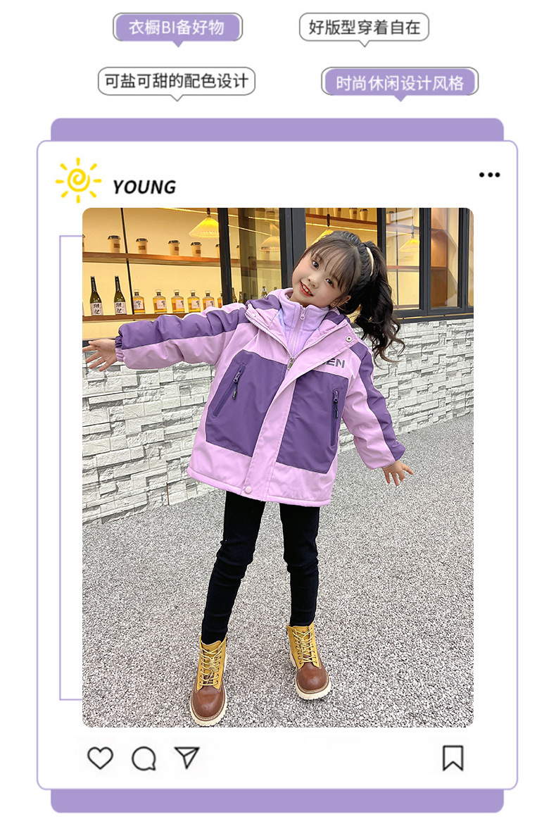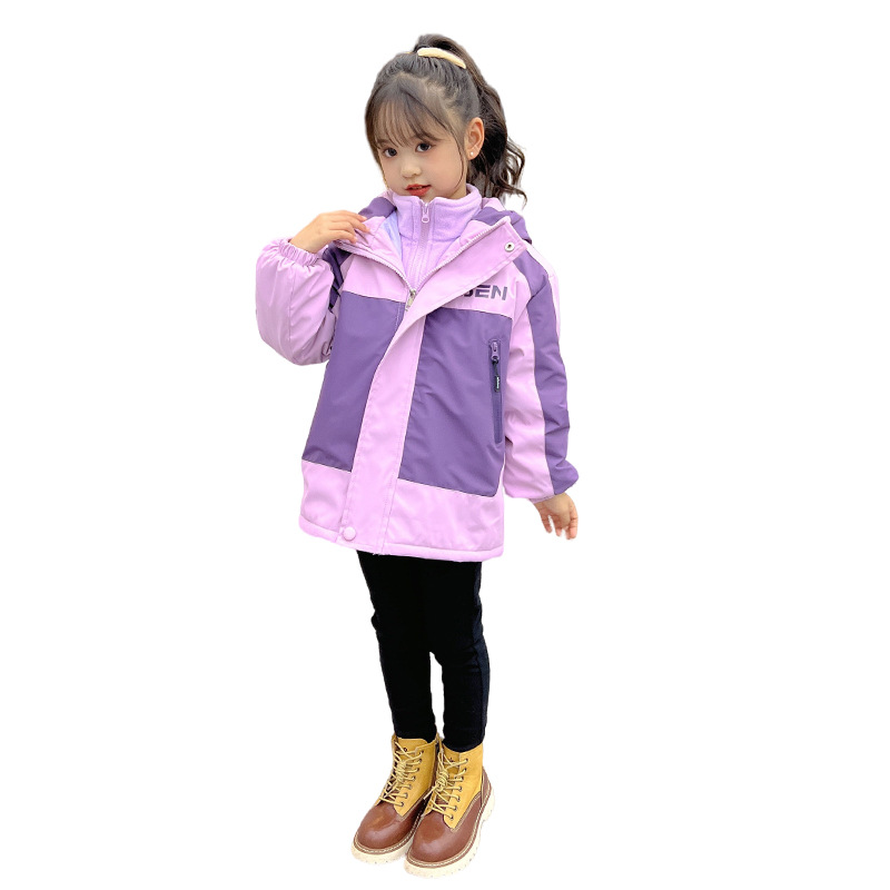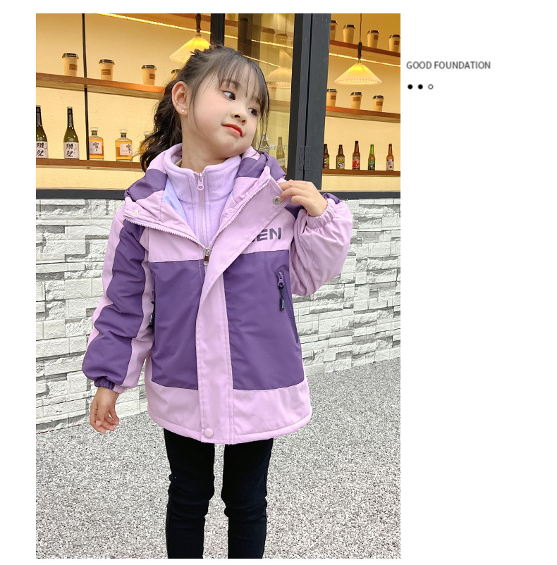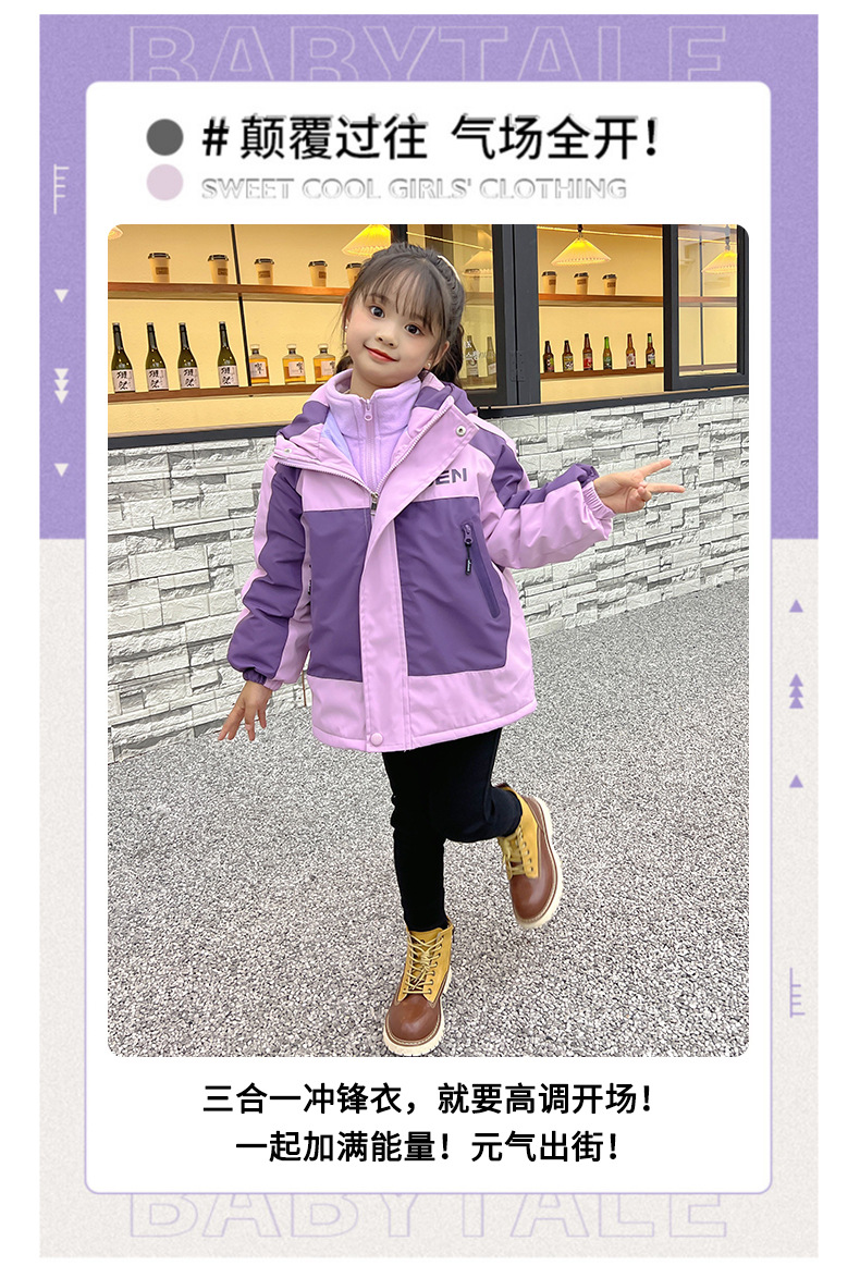 2025년 신상 스타일리시한 중대형 아동용 겨울 의류 여아용 재킷 가을 겨울 두꺼운 야외용 탈부착 가능한 투피스 세트스토어 가기