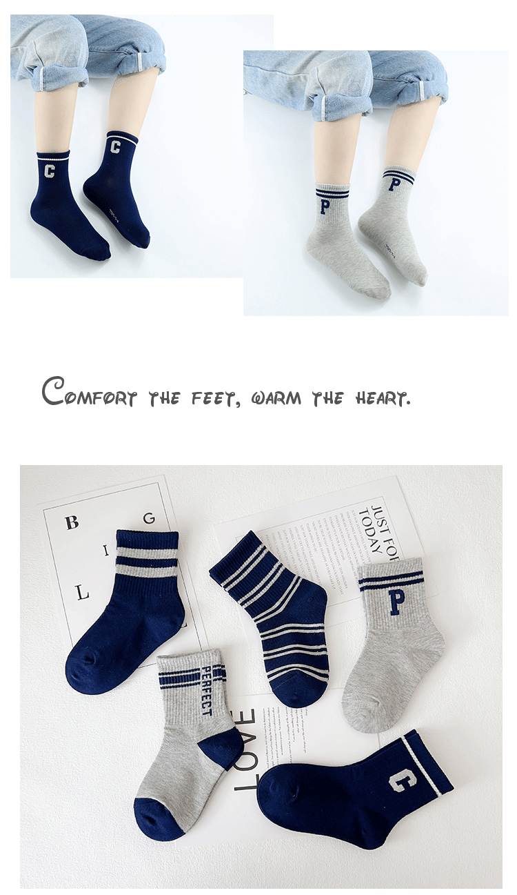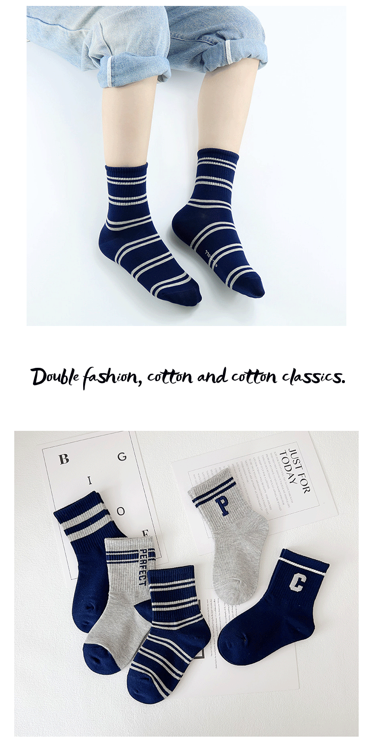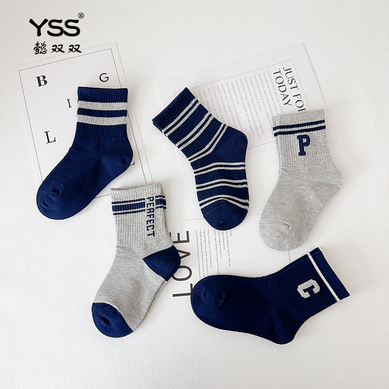 Yi Pair 어린이 양말 가을과 겨울 새로운 트렌디 브랜드 편지 중간 튜브 양말은 면화 소년의 스포츠 양말 뼈없는 유행 양말스토어 가기