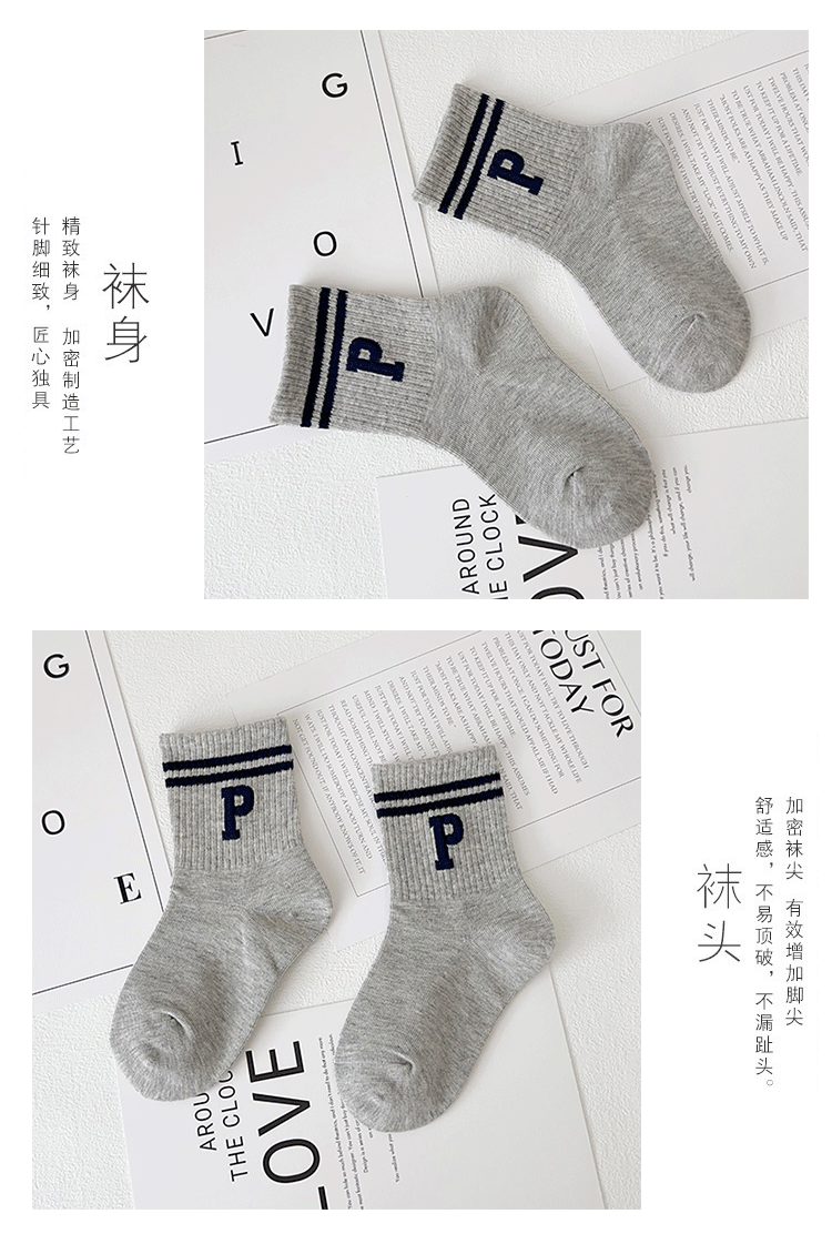 Yi Pair 어린이 양말 가을과 겨울 새로운 트렌디 브랜드 편지 중간 튜브 양말은 면화 소년의 스포츠 양말 뼈없는 유행 양말