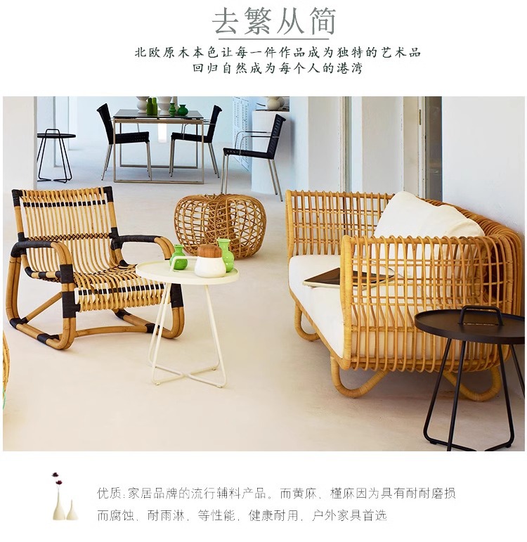 야외 등나무 소파 커피 테이블 조합 코트야드 가든 테라스 레저 짠 등나무 의자 야외 방수 선 스크린 소파스토어 가기
