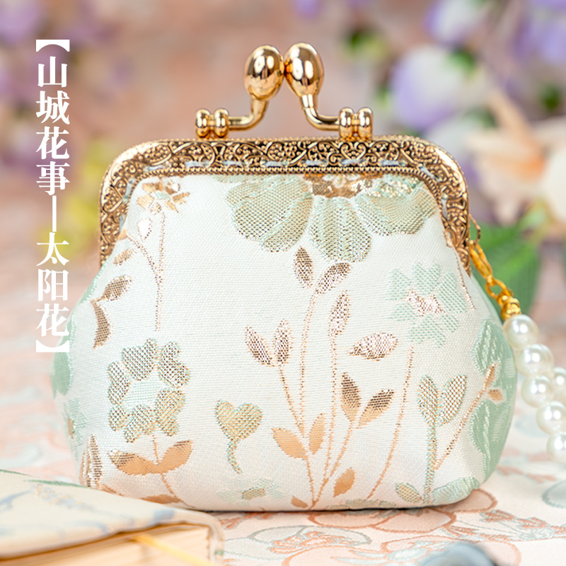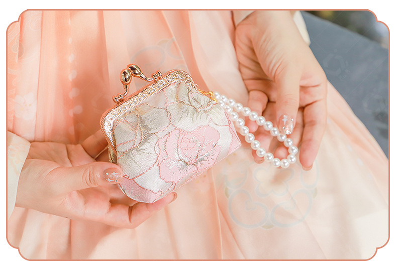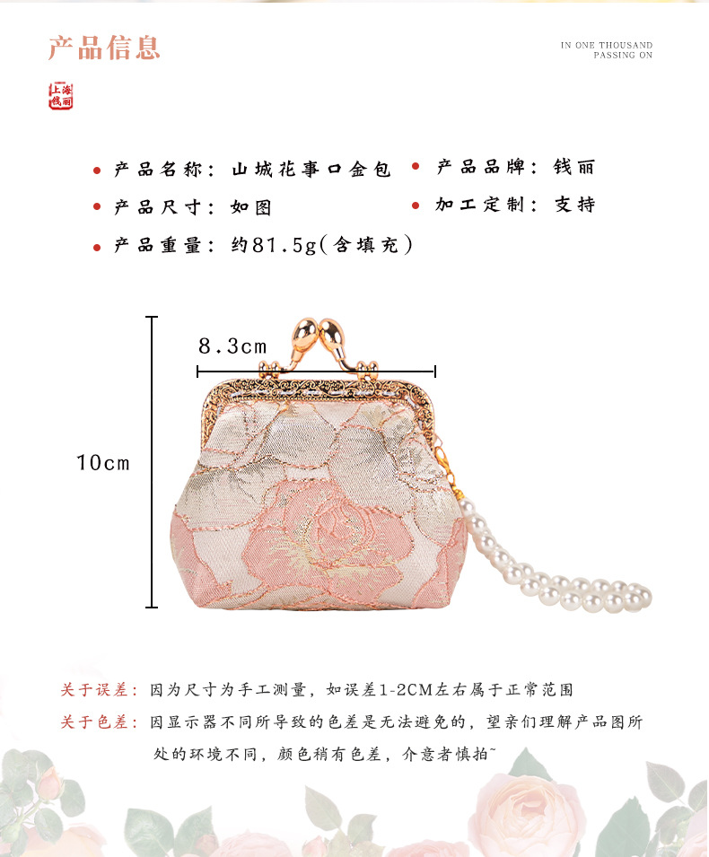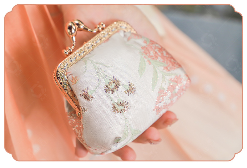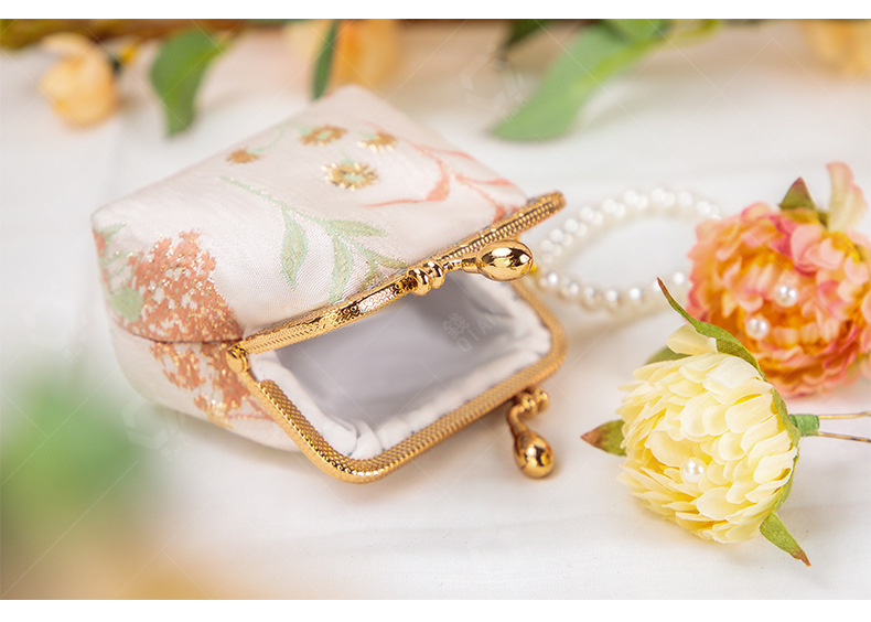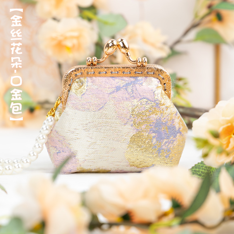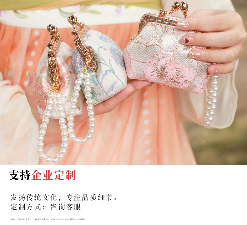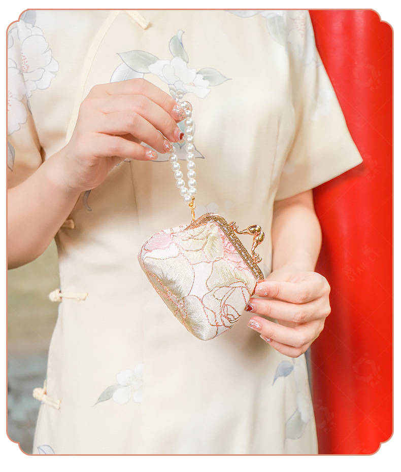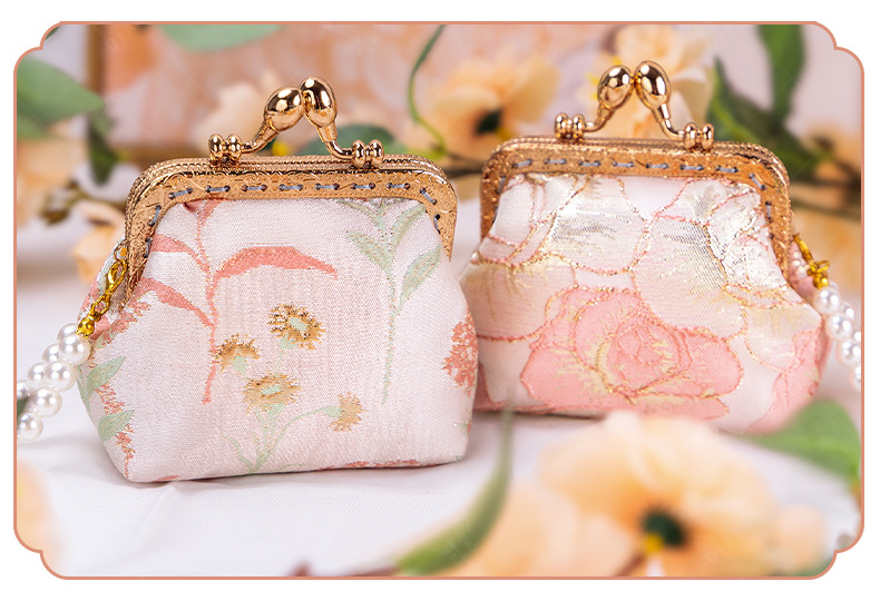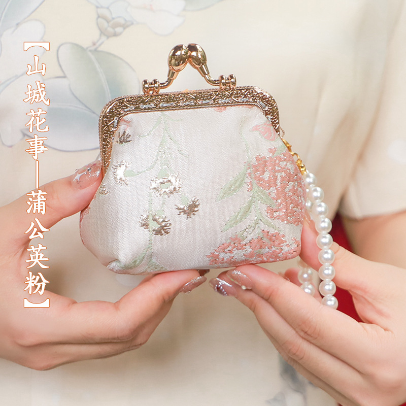 [첸리] 신중국풍 브로케이드 금속 잠금 장식 가방 동전 지갑 여성용 휴대용 진주 금속 잠금 장식 가방 동전 지갑 완제품