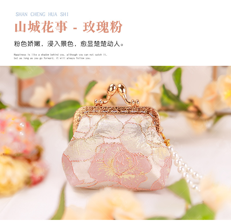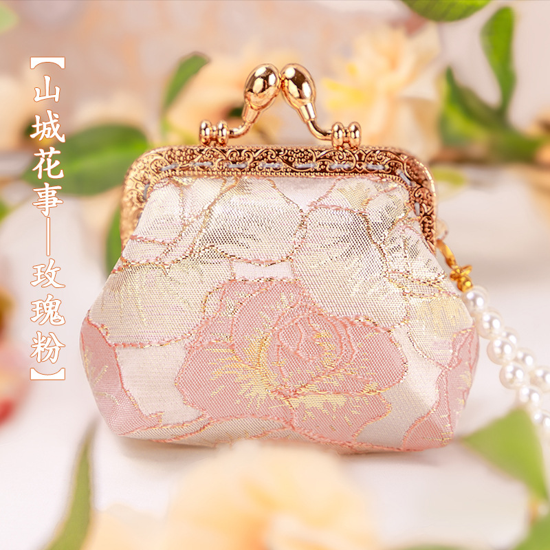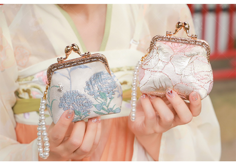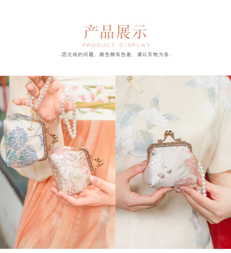 [첸리] 신중국풍 브로케이드 금속 잠금 장식 가방 동전 지갑 여성용 휴대용 진주 금속 잠금 장식 가방 동전 지갑 완제품스토어 가기