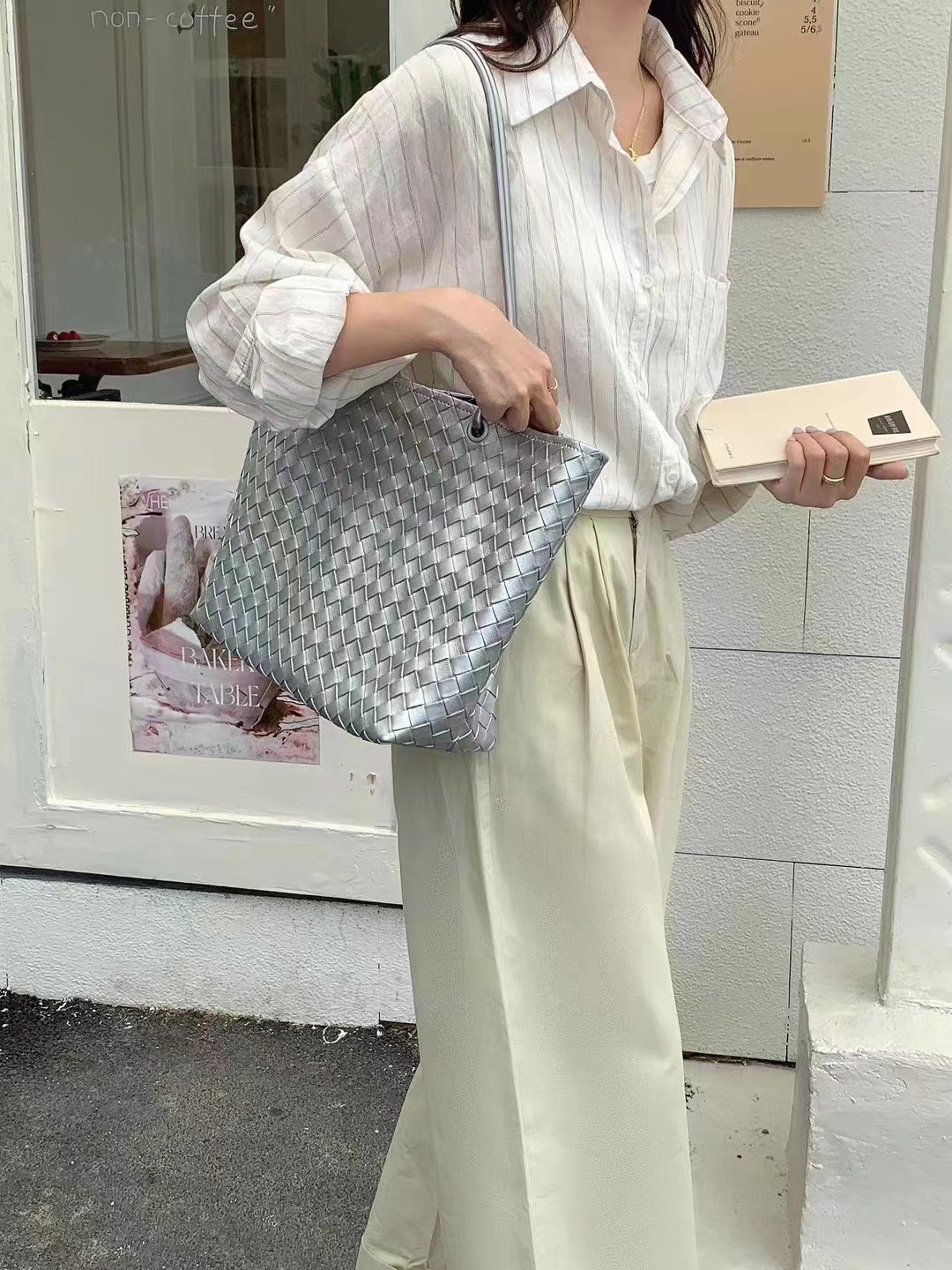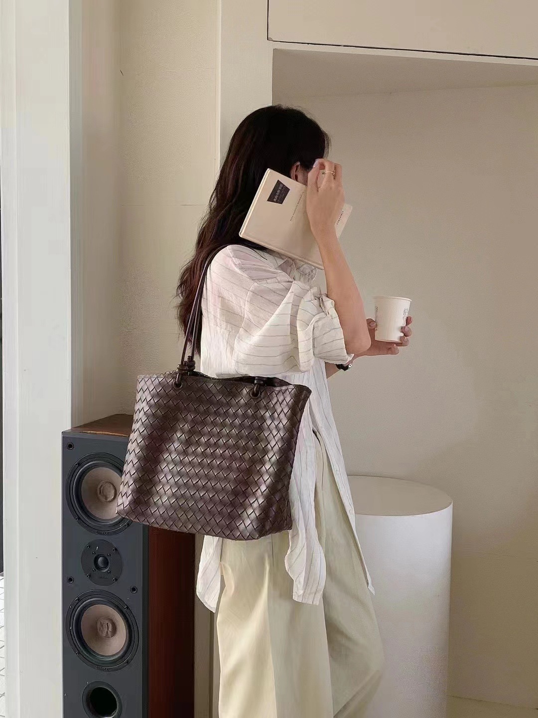 대용량 가방 여성 여름 2024 새로운 하이 엔드 센스 패션 통근 어깨 가방 올 매치 언더암 가방 토트 백스토어 가기